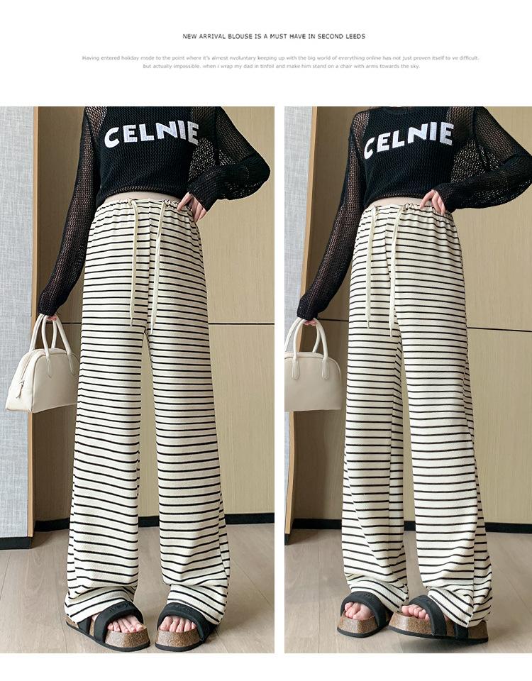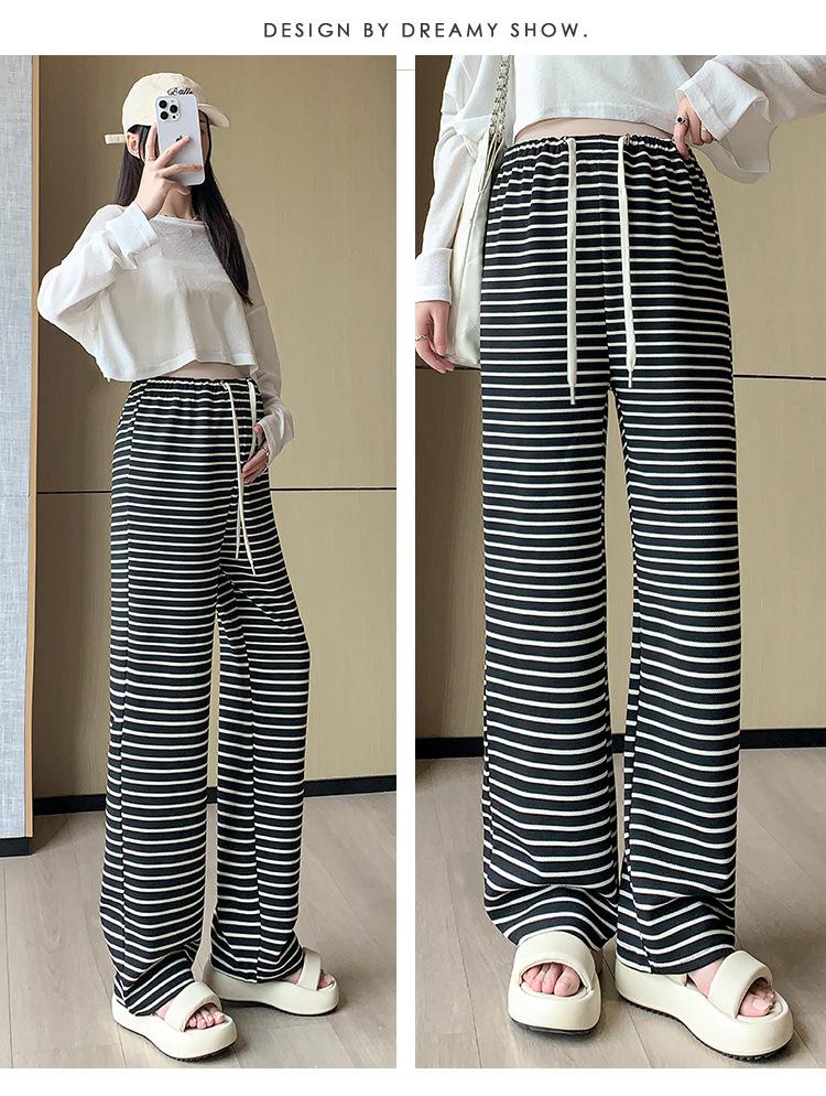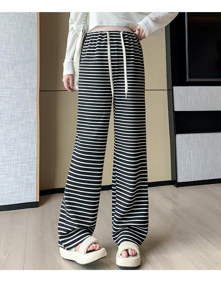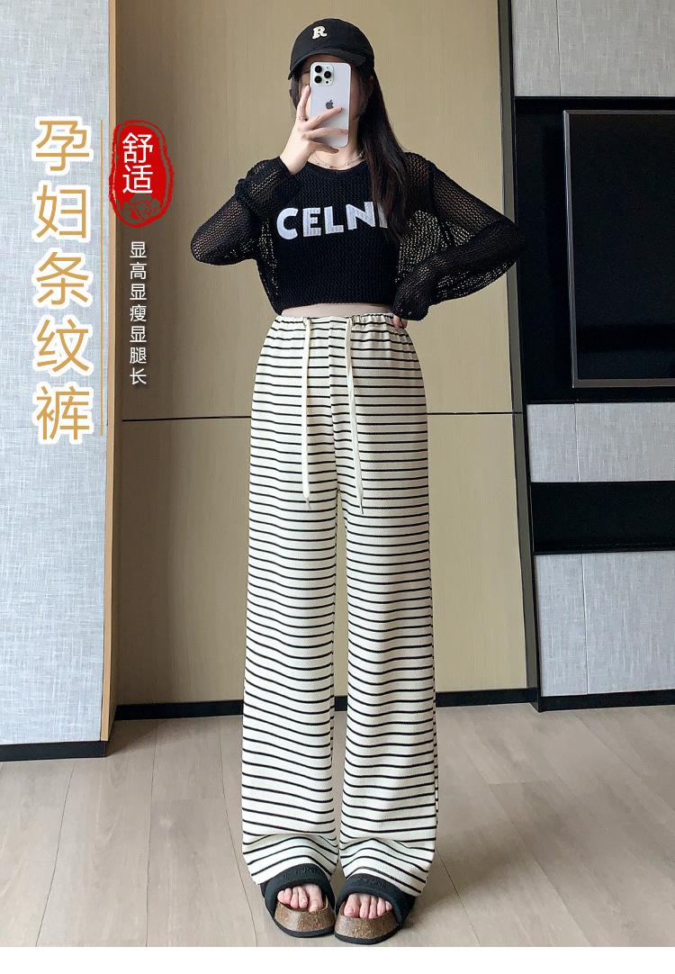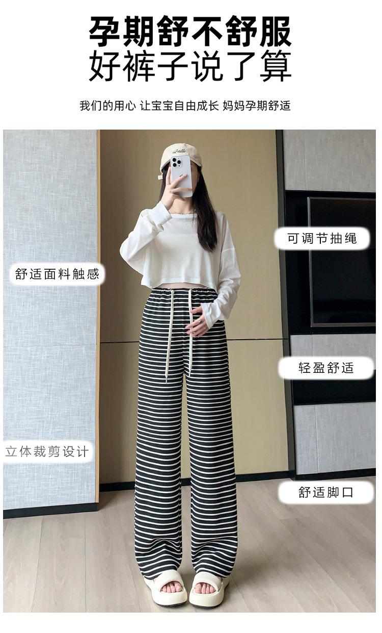 Pantalones anchos de punto para embarazadas, ropa de primavera y otoño para mujer, pantalones largos holgados a rayas para embarazadas 2024
