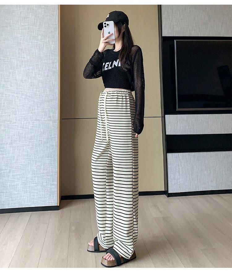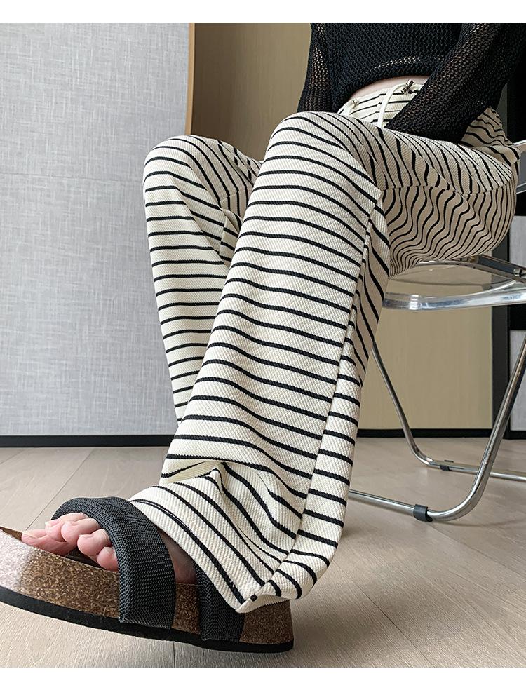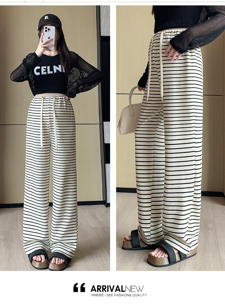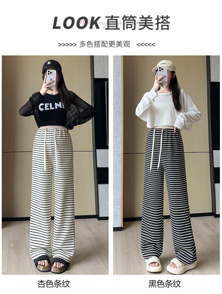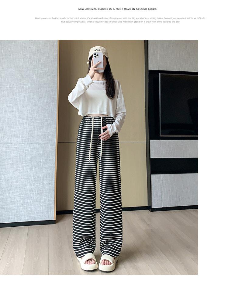 Pantalones anchos de punto para embarazadas, ropa de primavera y otoño para mujer, pantalones largos holgados a rayas para embarazadas 2024