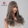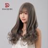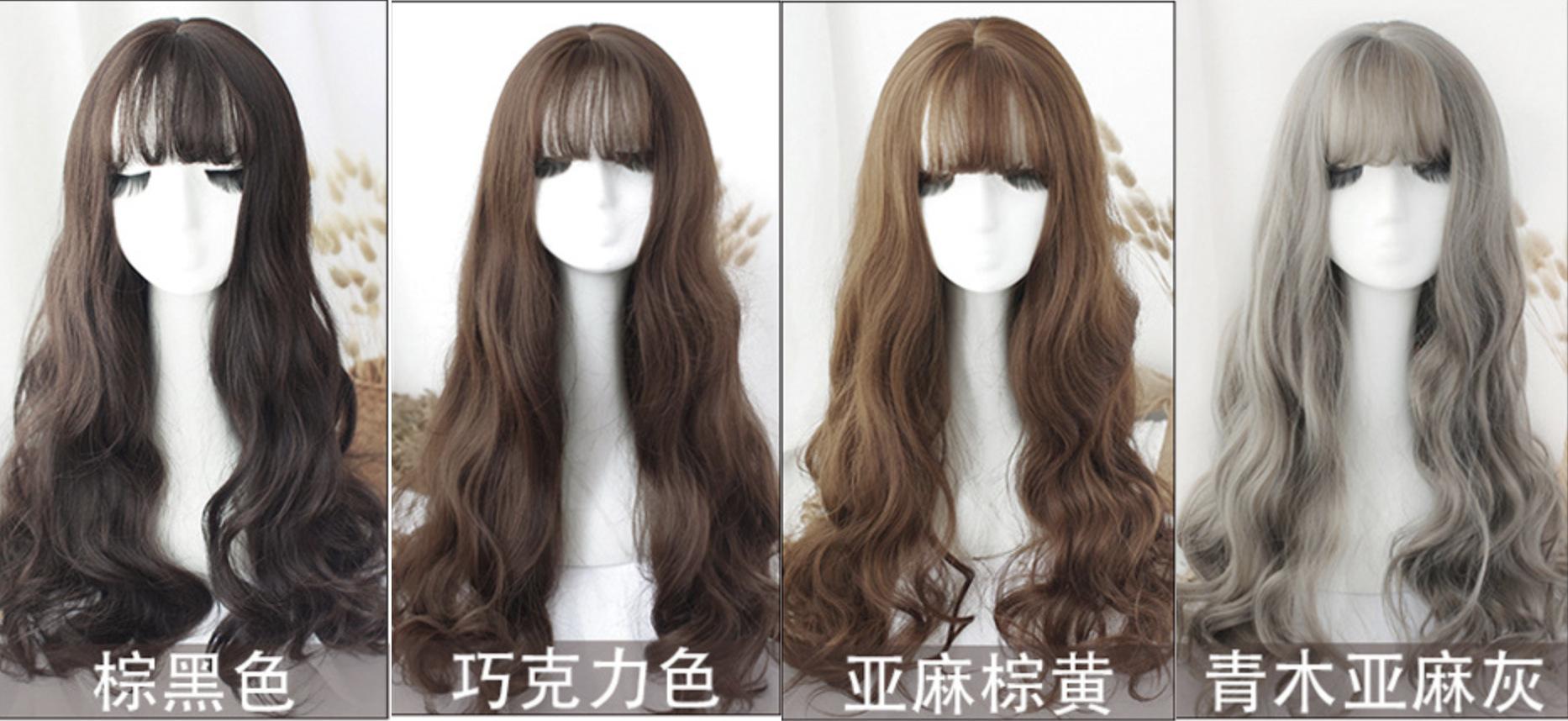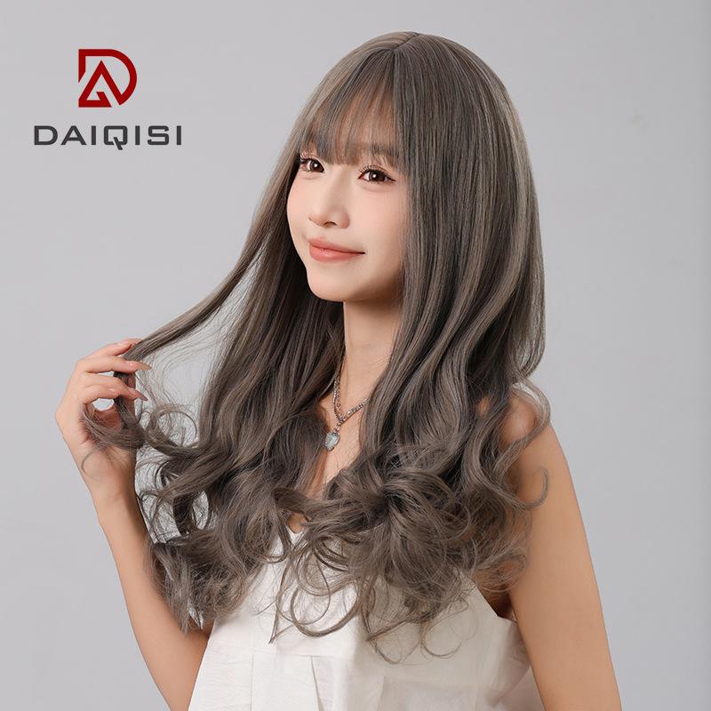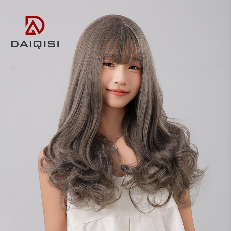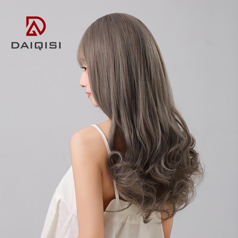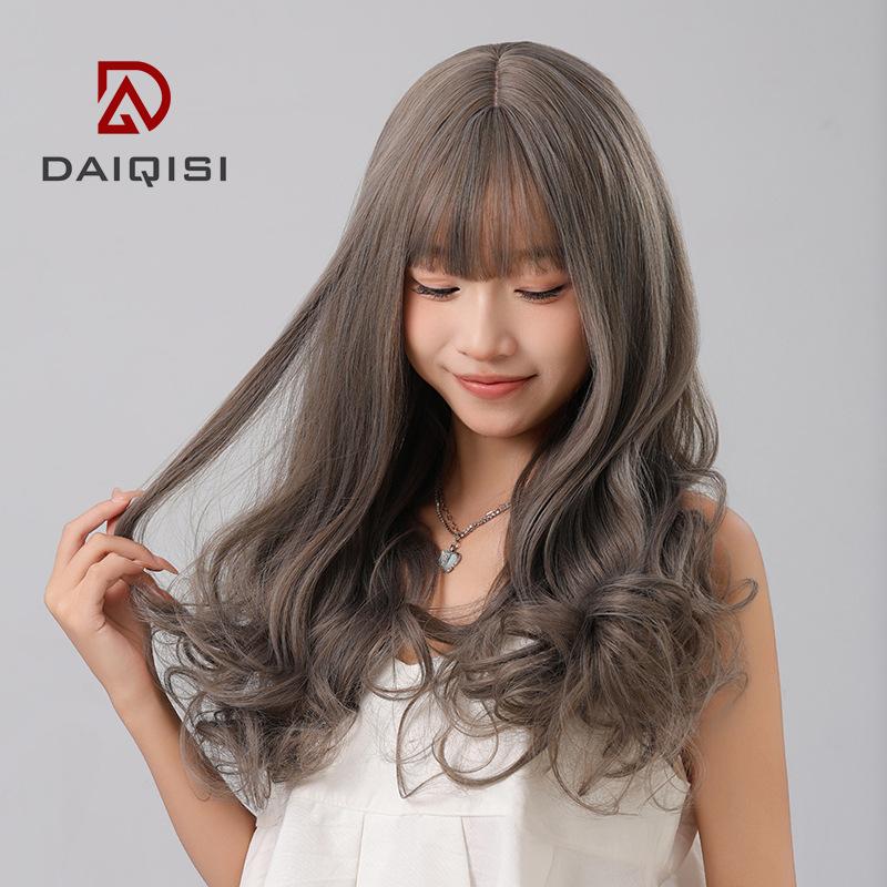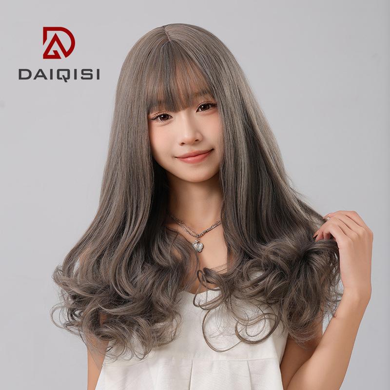 Moda de Celebridad de Internet Flequillo de Aire de Onda Grande Cabello Largo Rizado Peluca Realista de Seda de Alta Temperatura Peluca de Fibra Química para Mujer Venta al por Mayor