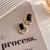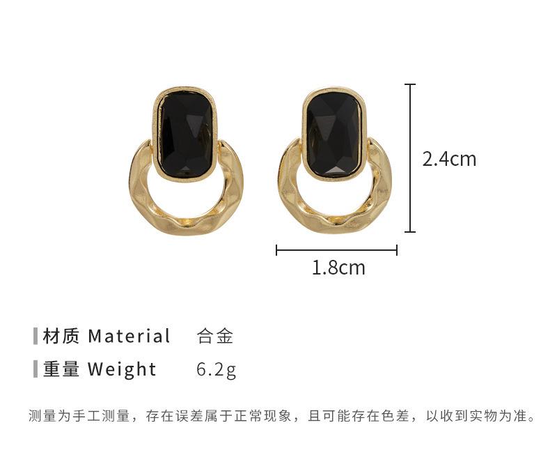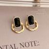 Pendientes de botón geométricos cuadrados de lujo con gemas negras, diseño de nicho femenino, pendientes de temperamento, nuevos pendientes retro 2023