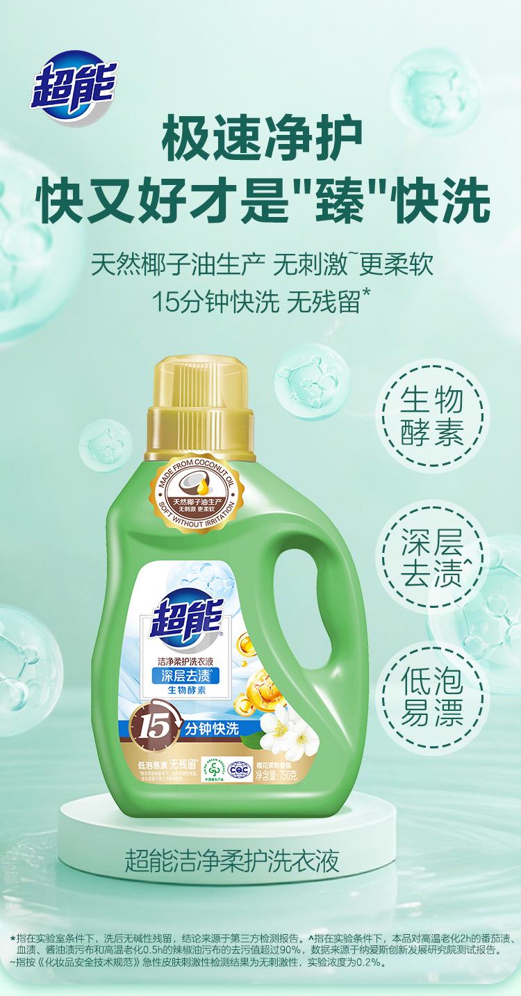 Detergente para Ropa Súper Limpio y Suave, Quitamanchas, Protección del Color, Baja Espuma, Fácil de Enjuagar, Fragancia Duradera, Remoción Profunda de Manchas, Aroma Jazmín