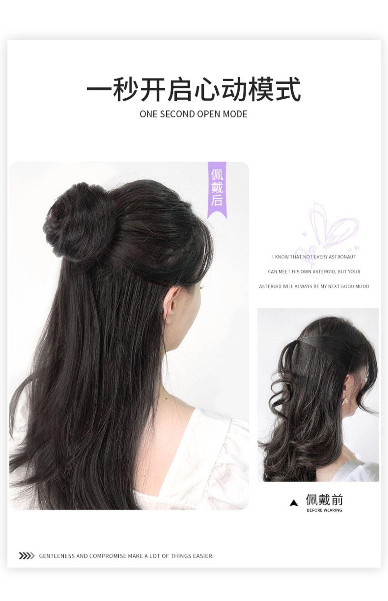 Peluca de mujer con bolitas para la cabeza, pinza para el pelo, bolitas para moño, pelo artificial, esponjoso, rizador natural, bolsa para peluca
