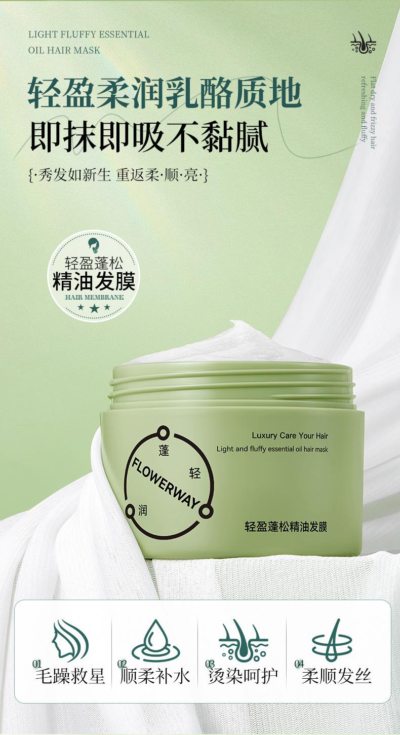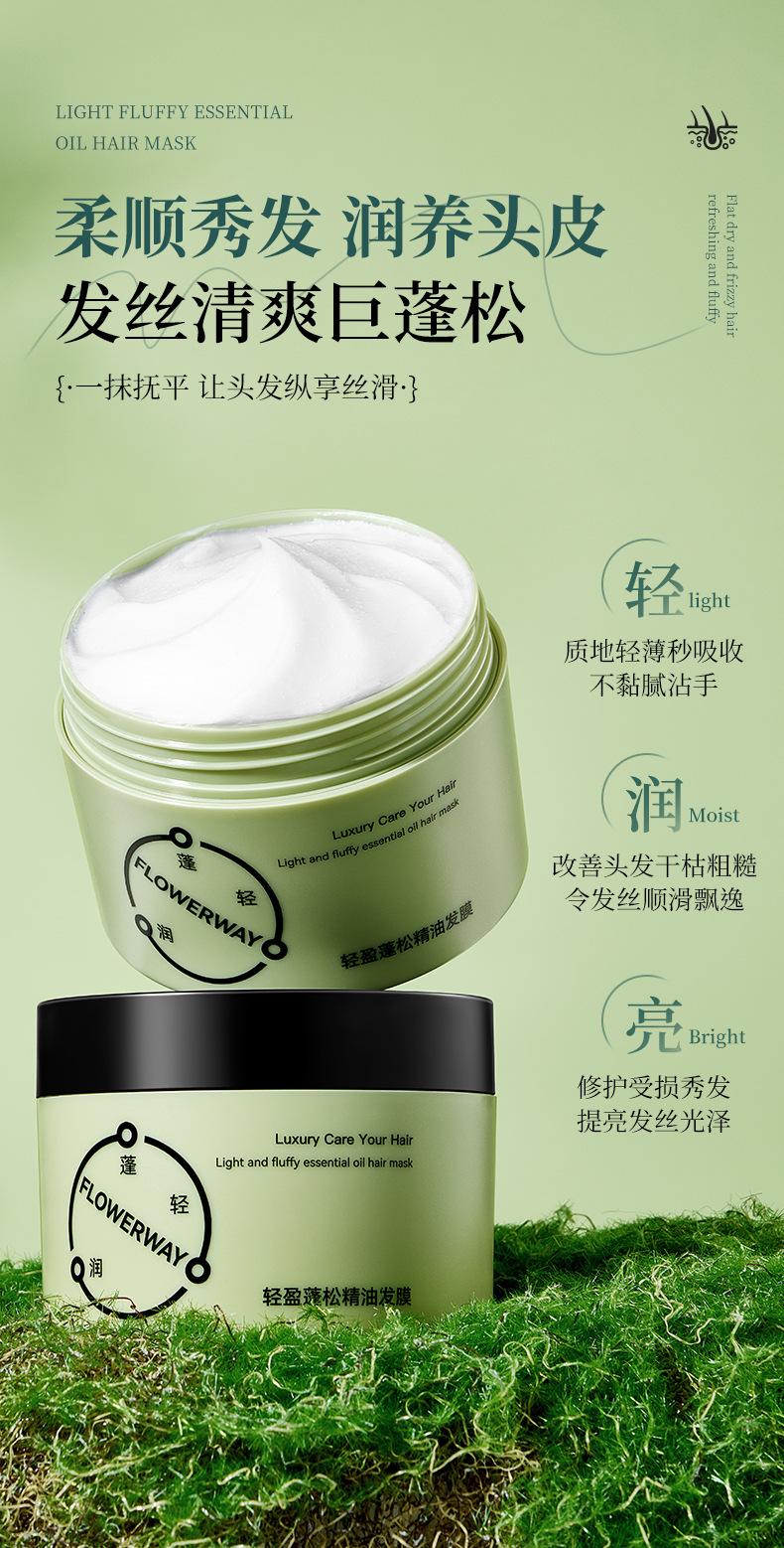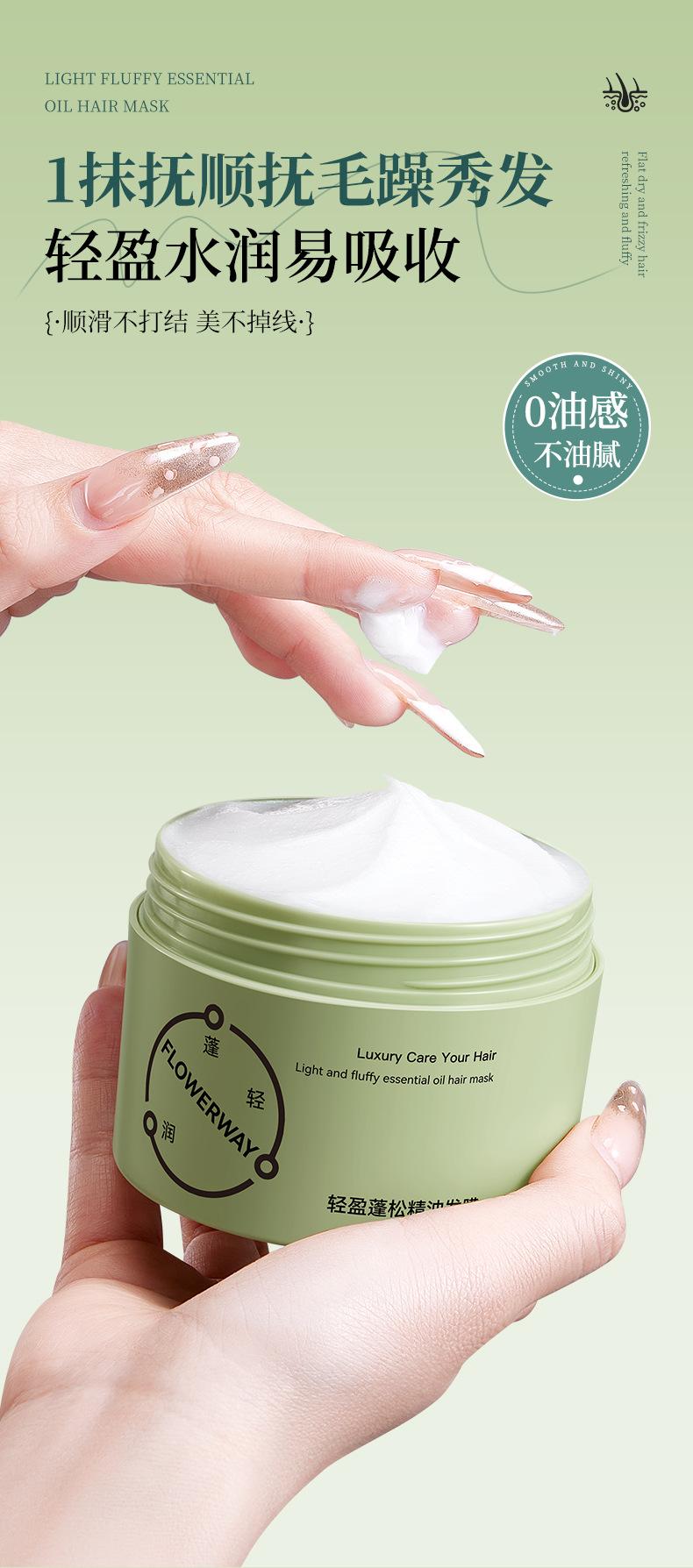 Mascarilla capilar ligera y esponjosa con aceite esencial FLOWERWAY para nutrición en peluquerías para mejorar el frizz seco y acondicionador hidratante