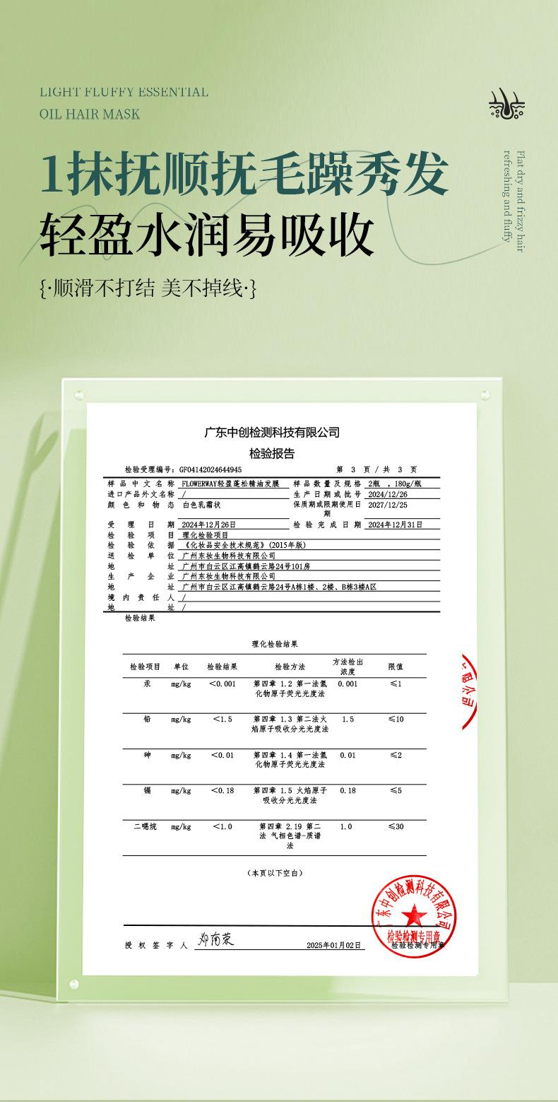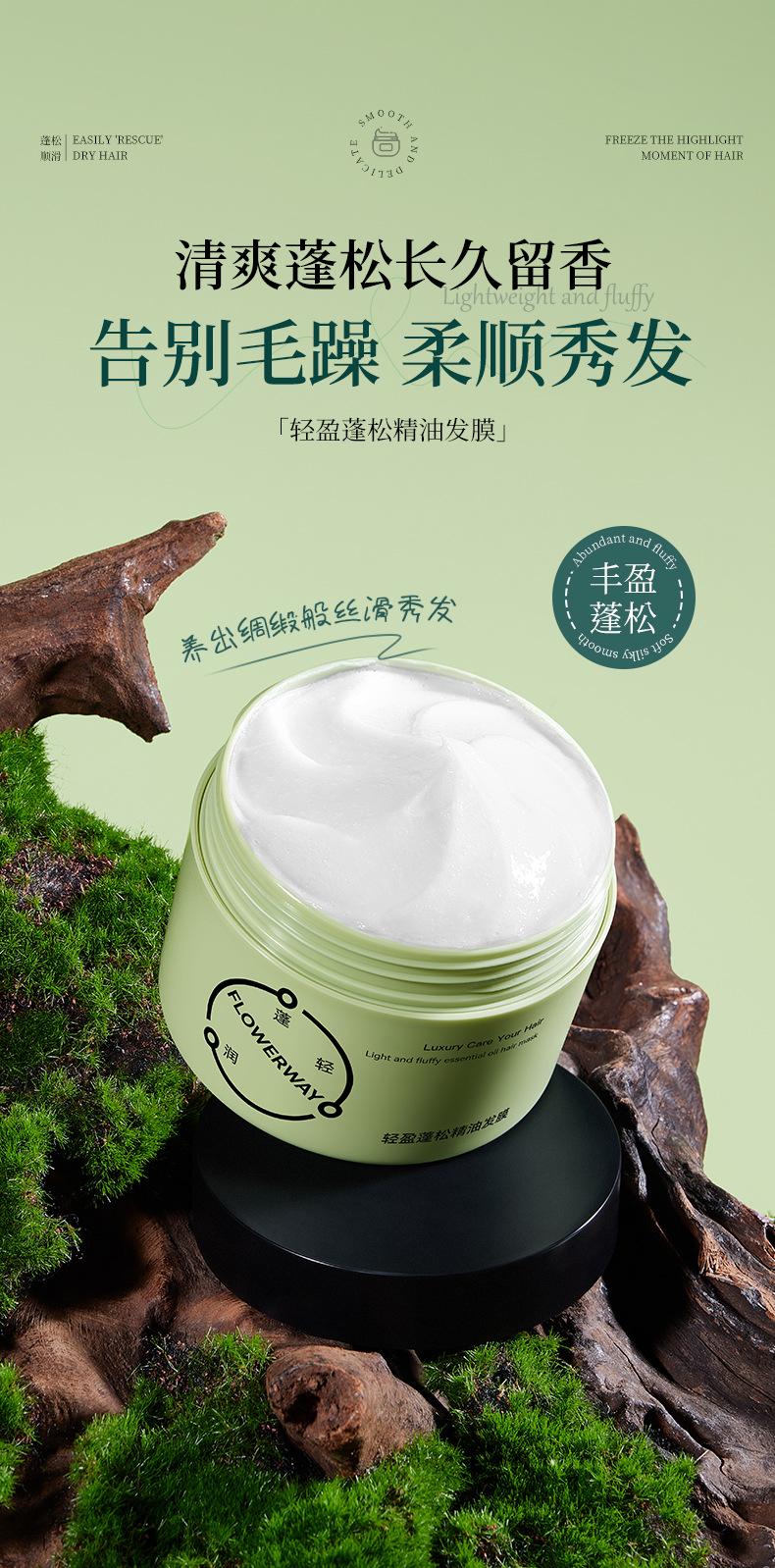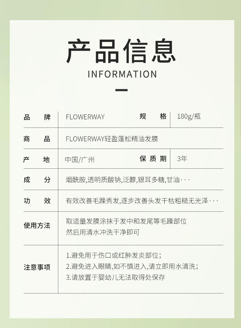 Mascarilla capilar ligera y esponjosa con aceite esencial FLOWERWAY para nutrición en peluquerías para mejorar el frizz seco y acondicionador hidratante