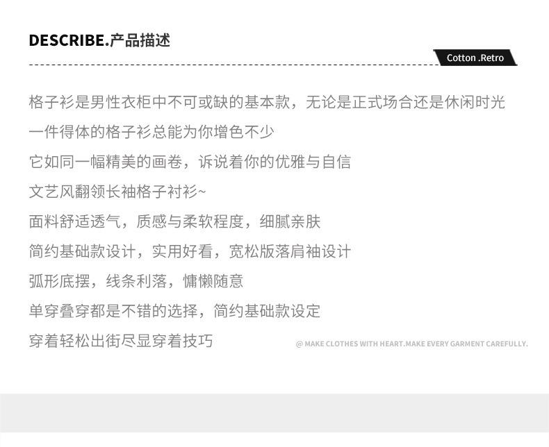Camisa casual de manga larga a cuadros para hombre T726, nueva primavera
