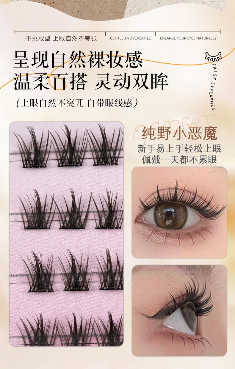 Pestañas Postizas Sin Pegamento Puro Salvaje Pequeño Diablo Portátil Segmentadas de un Solo Grupo Naturales Rizadas Pestañas Perezosas para Mujeres