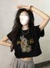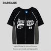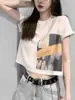 Camiseta de verano 2023 con estampado de letras, holgada, corta, retro, para estudiantes, con contraste americano, cuello redondo y manga corta para mujer