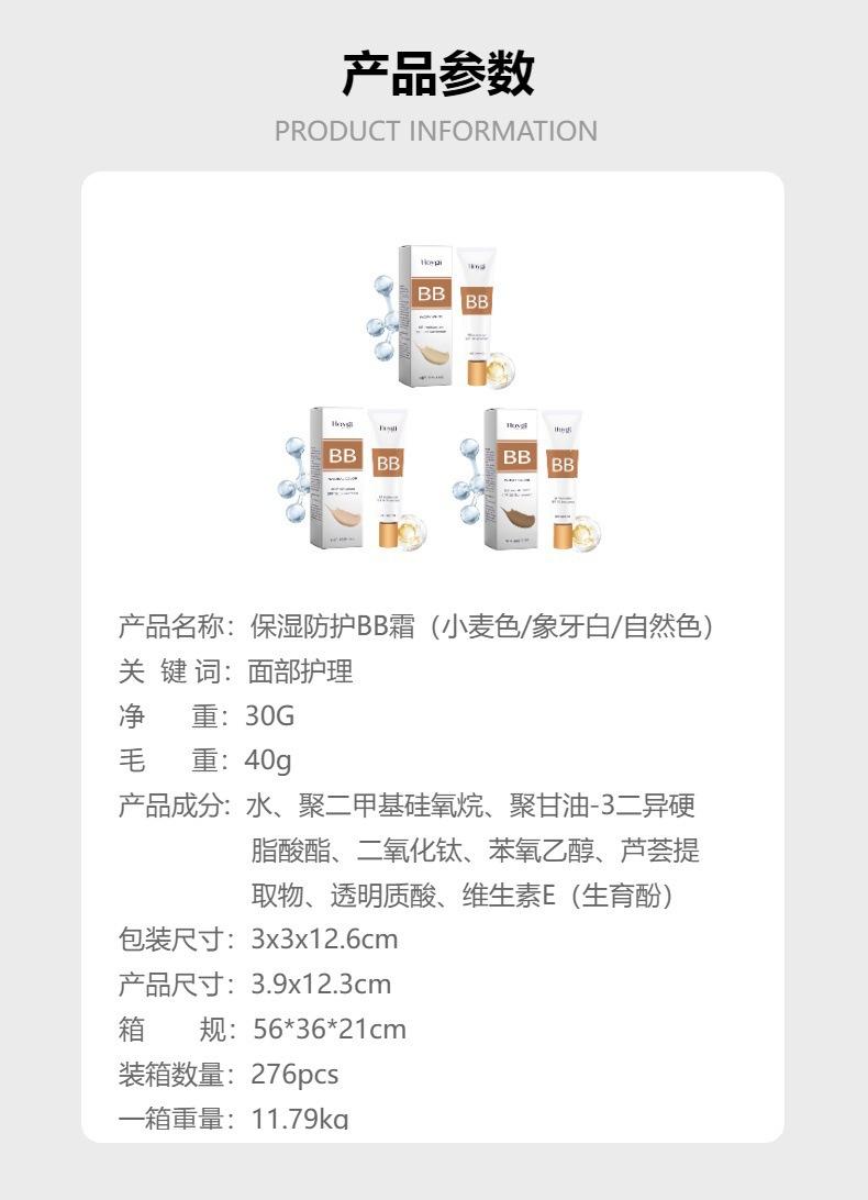 HOYGI Crema BB hidratante y protectora, corrector hidratante, base ligera, base aislante, maquillaje líquido, color de piel natural.
