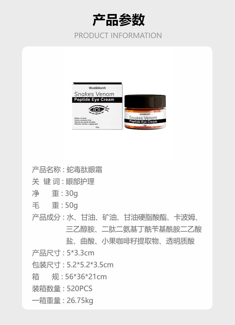 Crema para Ojos Péptido Veneno de Serpiente West & Month Nutre Suavemente la Piel, Desaliniza las Líneas Finas, Crema para Ojos Hidratante