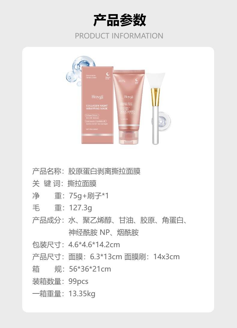 Mascarilla de colágeno HOYGI para lágrimas, hidratante, limpiadora y cuidado nocturno.