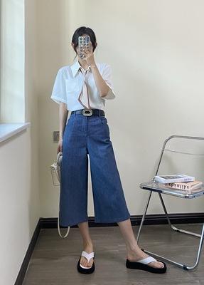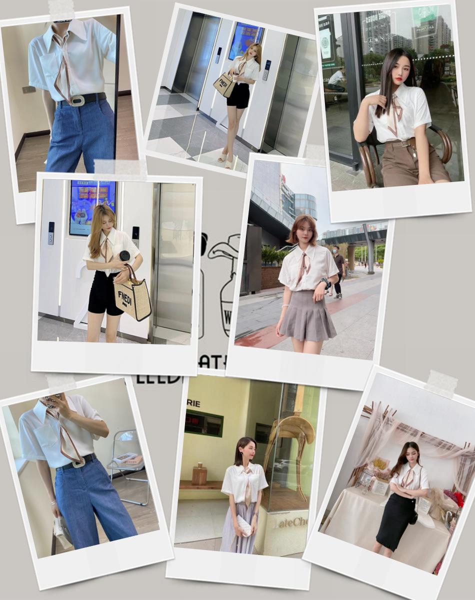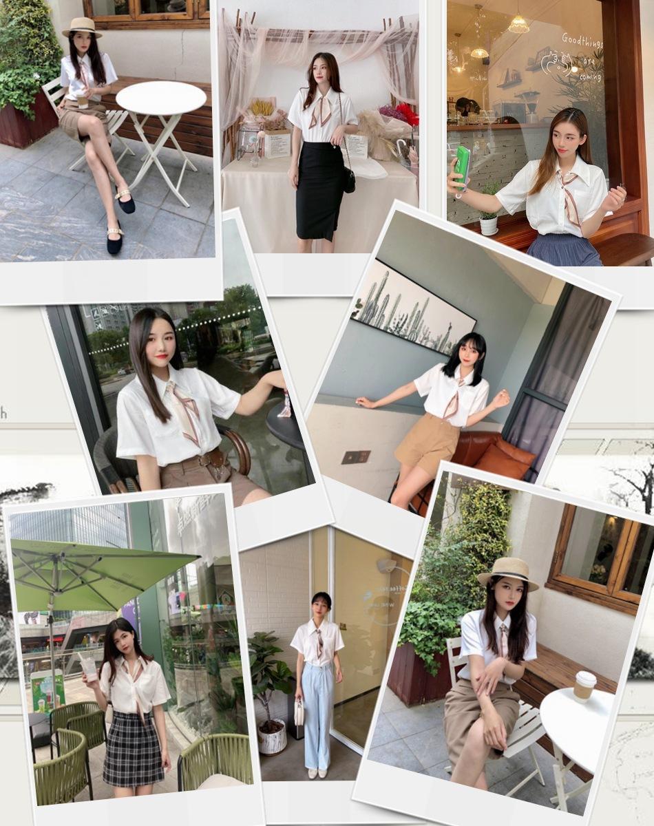 Compra Verano 2023 Nueva Camisa Blanca con Lazo Profesional Gasa Camisa Blanca Diseño para Mujer Sentido de la Moda Ligero Maduro Manga Corta Top al por mayor en Joom.pro