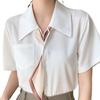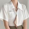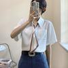 Verano 2023 Nueva Camisa Blanca con Lazo Profesional Gasa Camisa Blanca Diseño para Mujer Sentido de la Moda Ligero Maduro Manga Corta Top