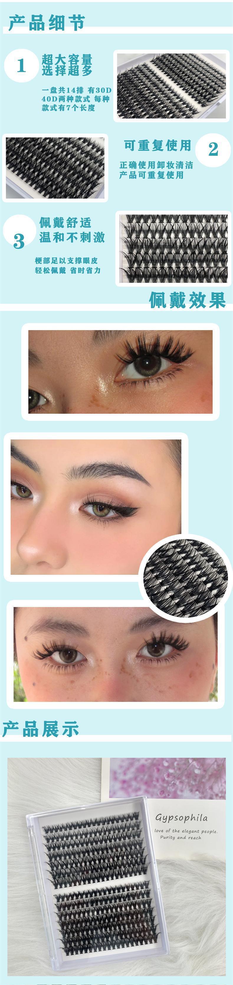 Pestañas postizas DIY, extensiones de pestañas transfronterizas europeas y americanas, 30D/40D, termofusibles, gran capacidad, 14