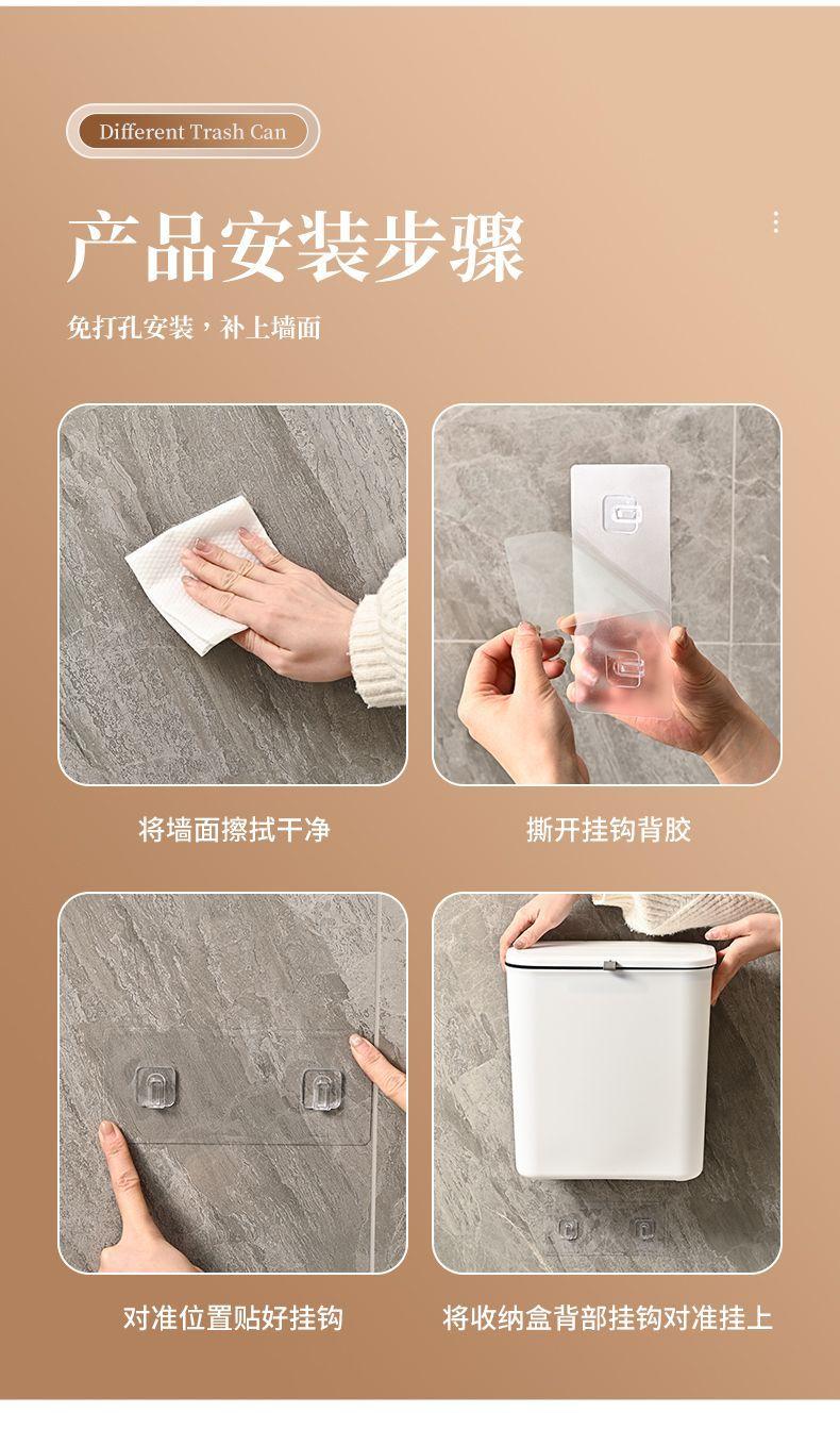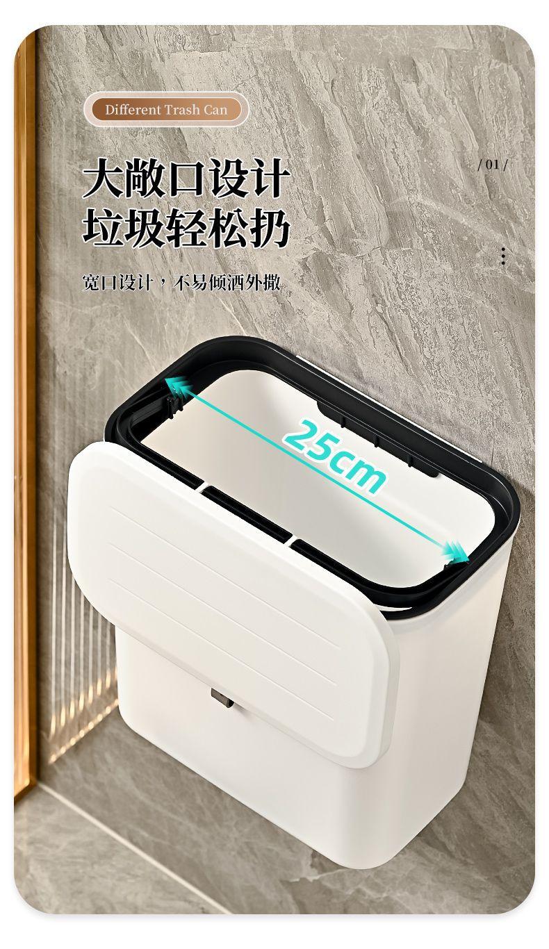 Bote de Basura para Baño Montado en la Pared Sin Perforaciones para Hogar Tipo Tapa Abatible Inodoro Ranura Estrecha Bote de Basura Cocina Colgante
