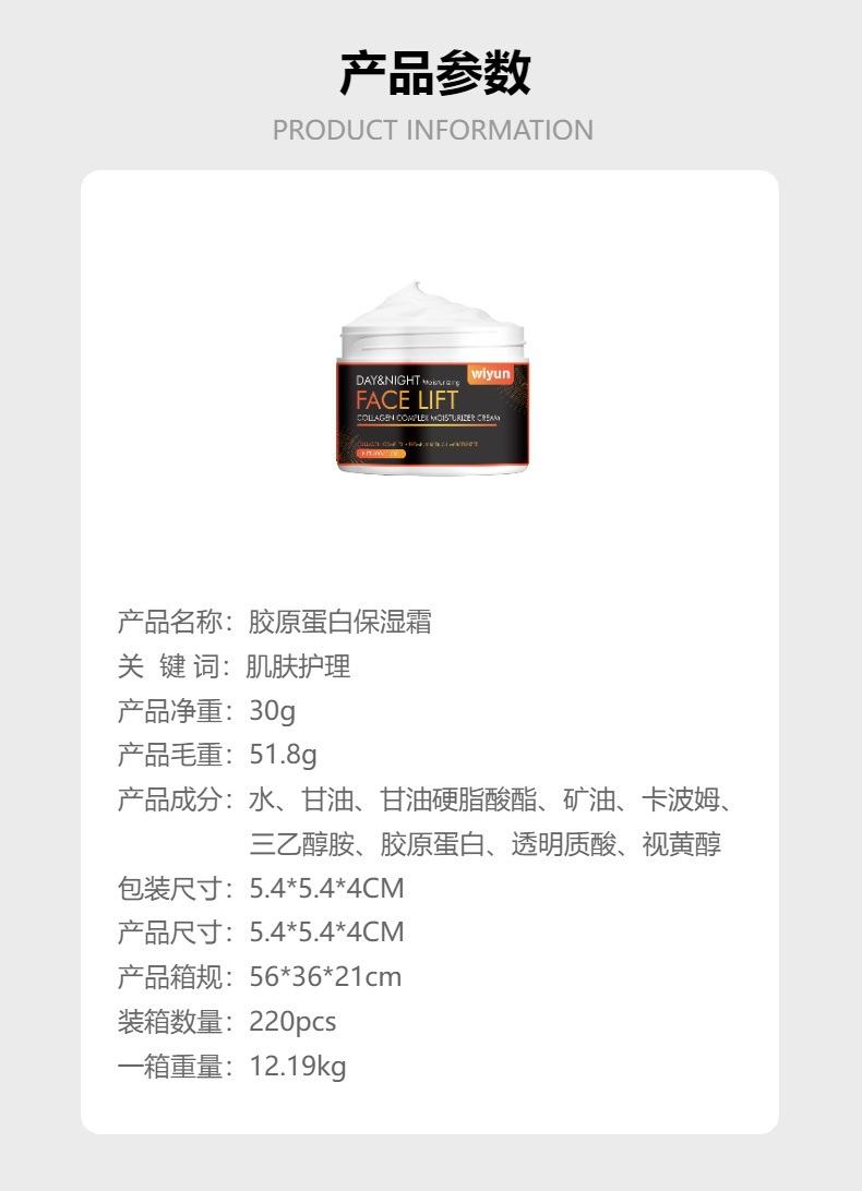 Crema hidratante de colágeno Wiyun. Hidratante. Mejora la piel opaca y compacta. Crema hidratante para el rostro.
