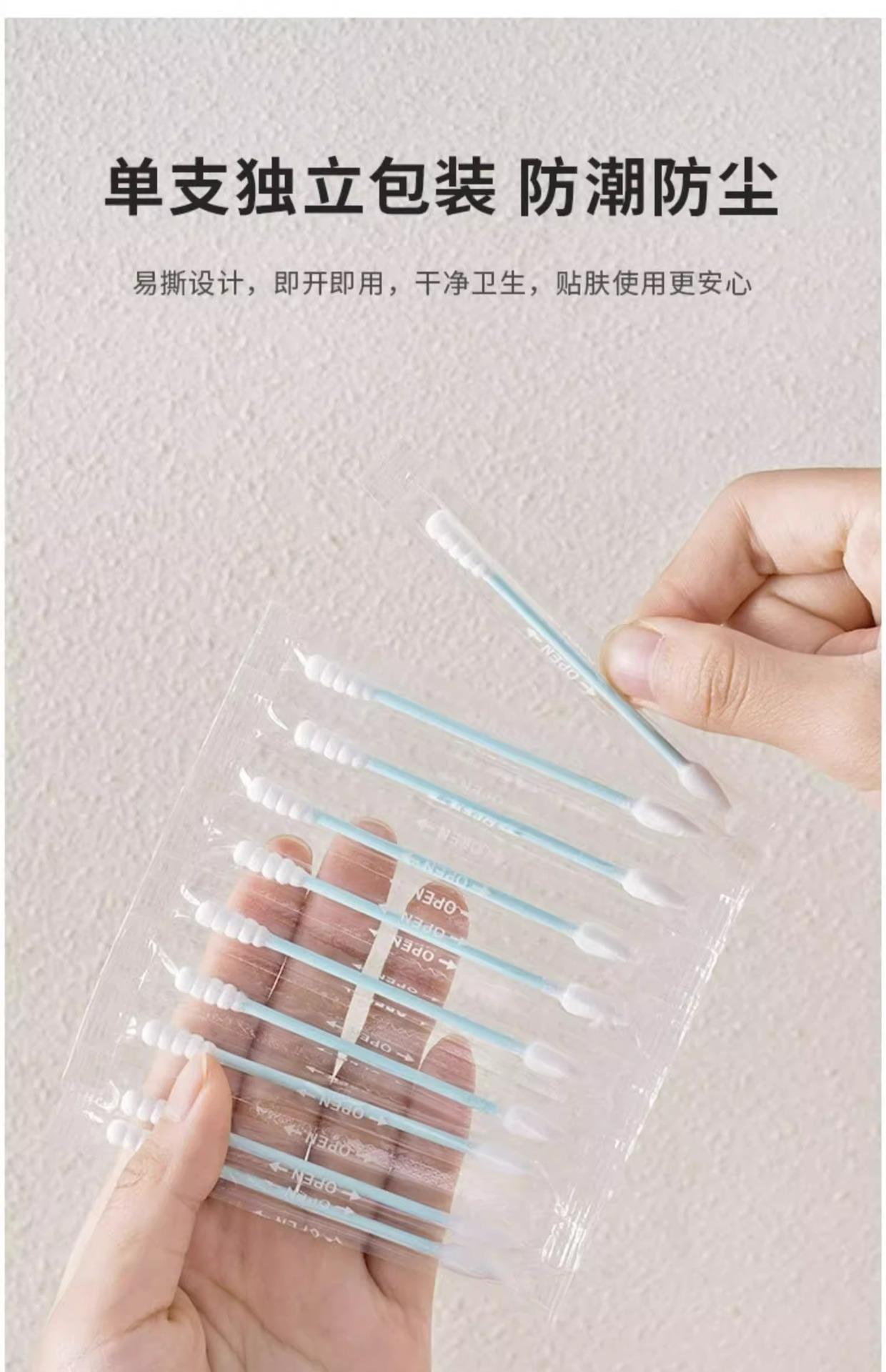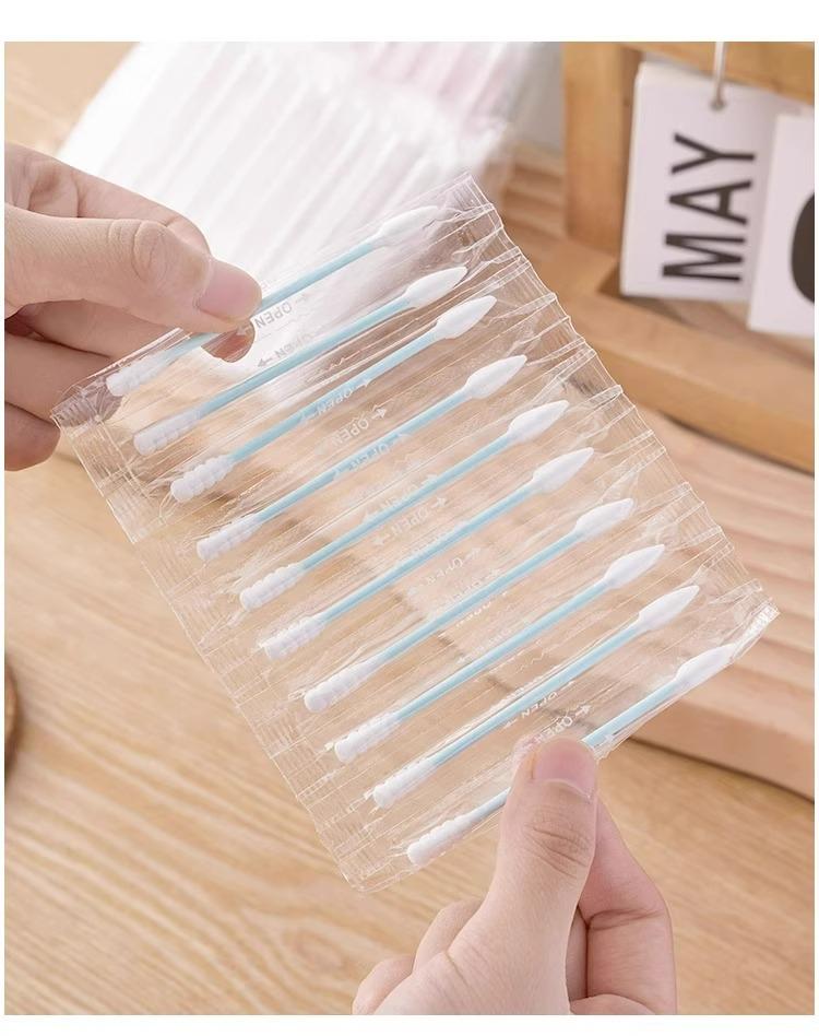 Hisopos de Algodón Desechables para Limpieza de Oídos, Limpieza de Maquillaje, Hisopos de Algodón de Doble Punta para Limpieza e Higiene Doméstica, Cabezas Redondas Puntiagudas, Empaquetados Individualmente