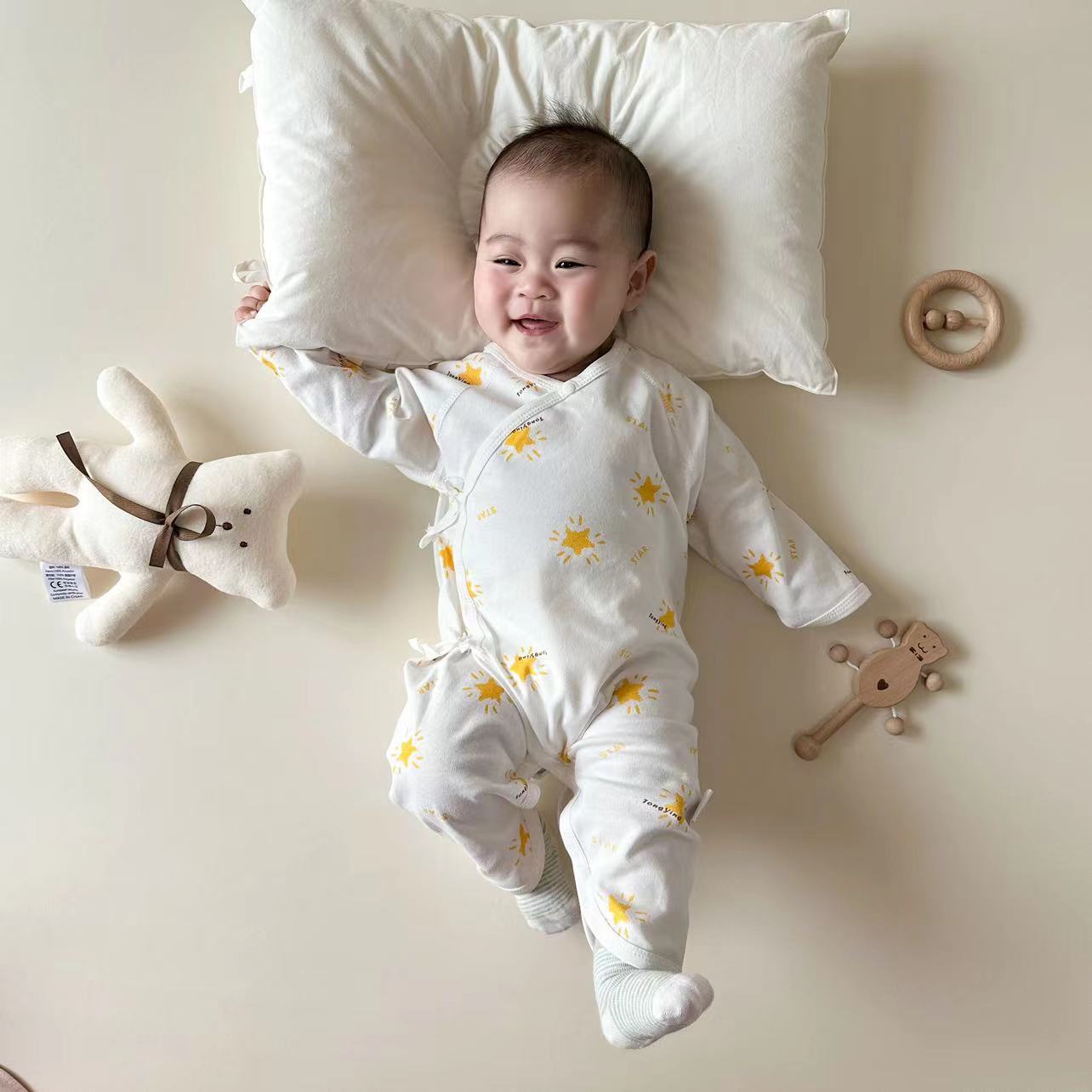 0-6 meses algodón puro ropa de bebé recién nacido otoño mameluco para bebé para hombre y mujer ropa de mariposa de las Cuatro Estaciones para escalar manga larga