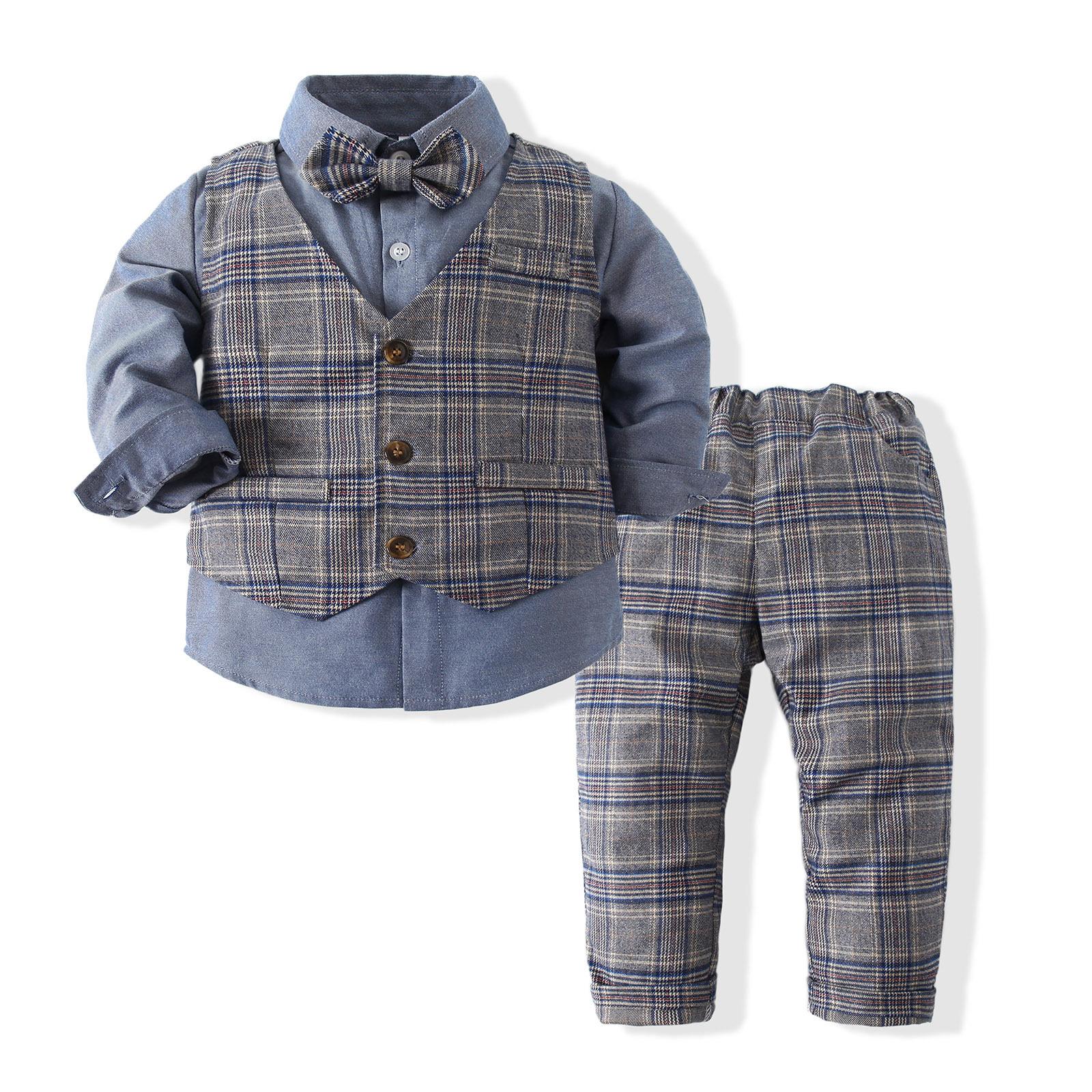| Traje de tres piezas para niño caballero, vestido de banquete, estilo europeo y americano, chaleco a cuadros, camisa, pantalones, traje para niños¥59Comprar ahora |