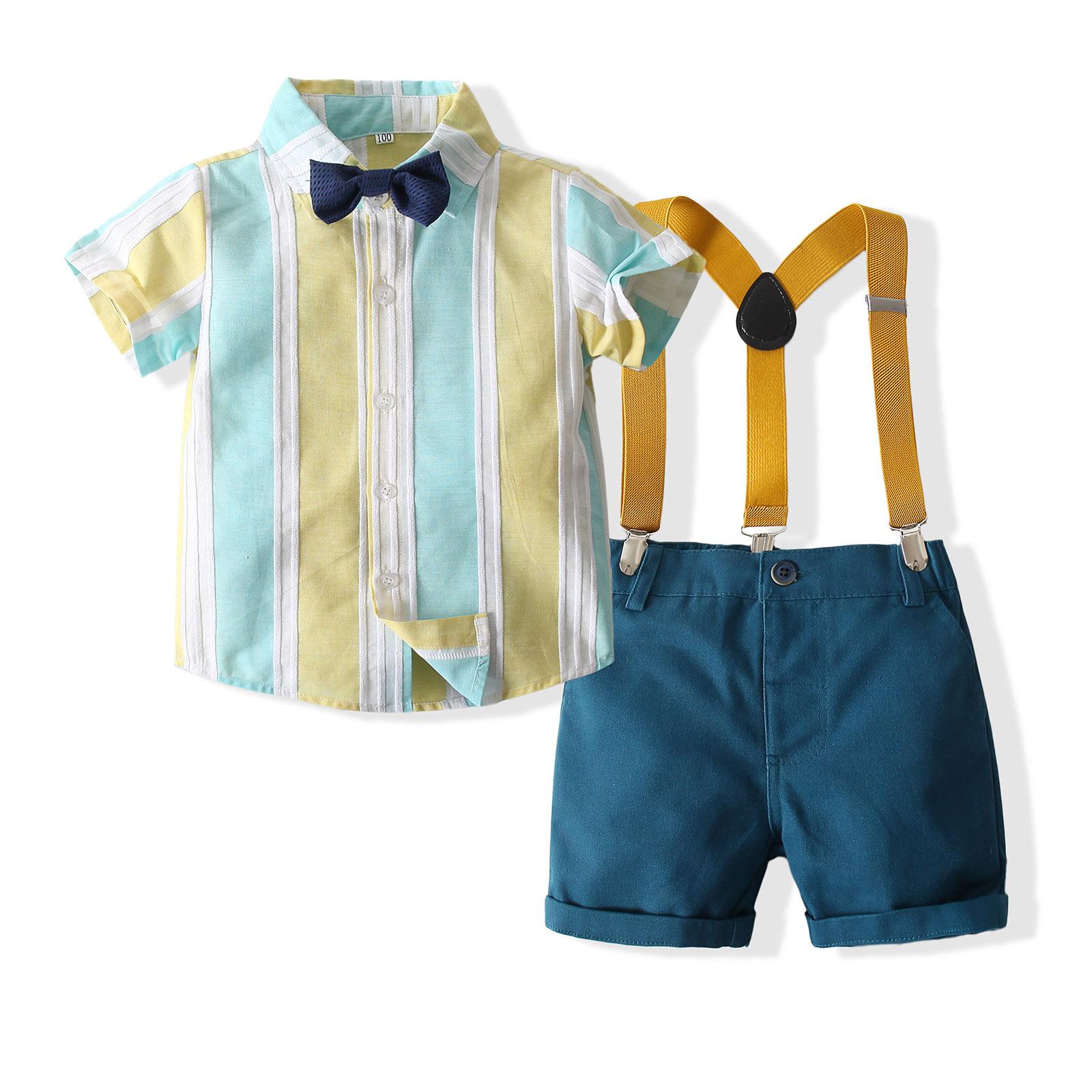 | Traje de verano para niños de manga corta y pantalones cortos, camisa a rayas para niños, overol, caballero, pajarita, conjunto de 2 piezas¥47Comprar ahora |