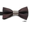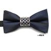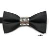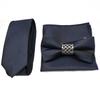 Conjunto de tres piezas de corbata de lazo hueca de metal retro con estampado oscuro y color sólido con personalidad profesional para hombre