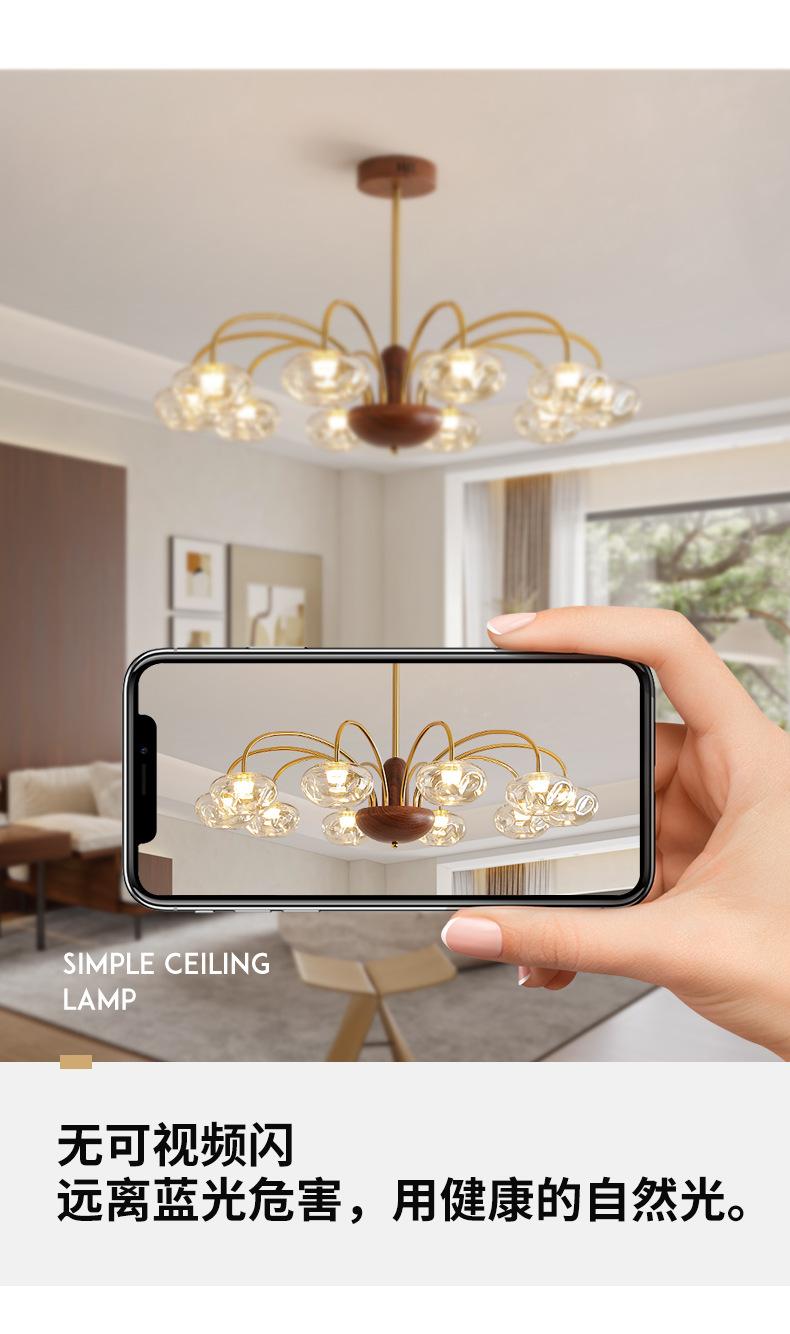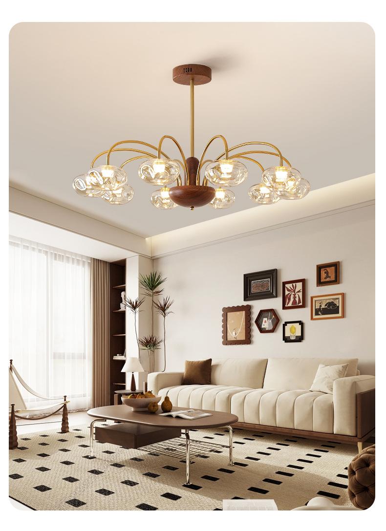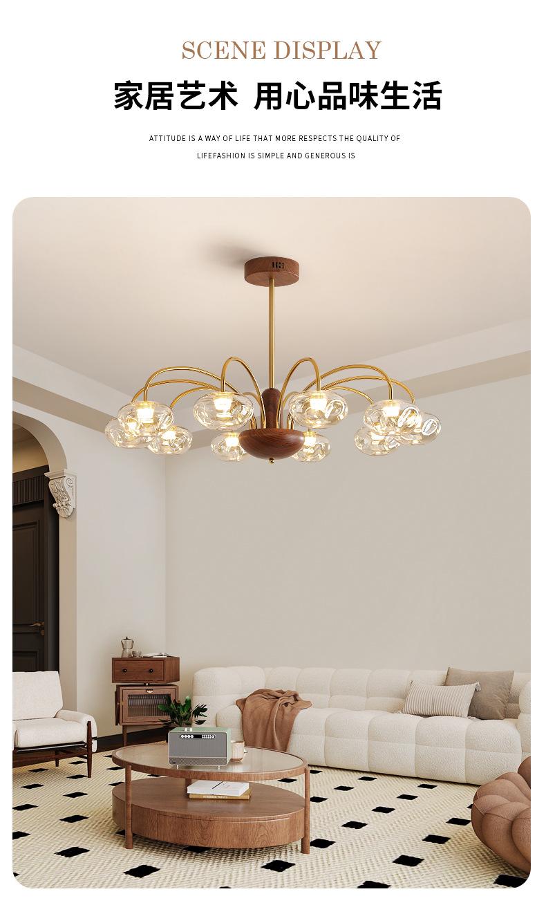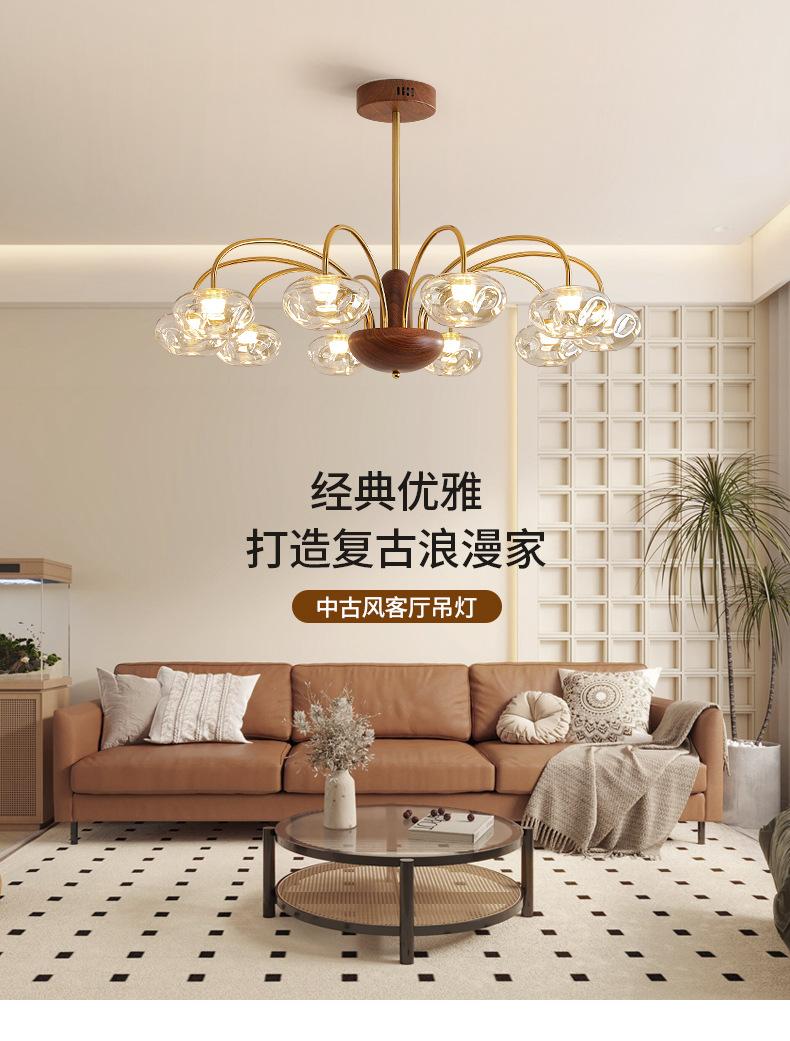 Lámpara de Araña de Sala de Estar de Estilo Francés de Mediados de Siglo, Moderna Simple, Ligera, Lujosa y de Alta Gama, Lámpara Creativa de Protección Ocular de Vidrio