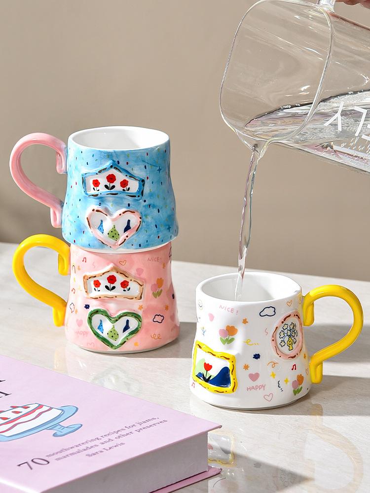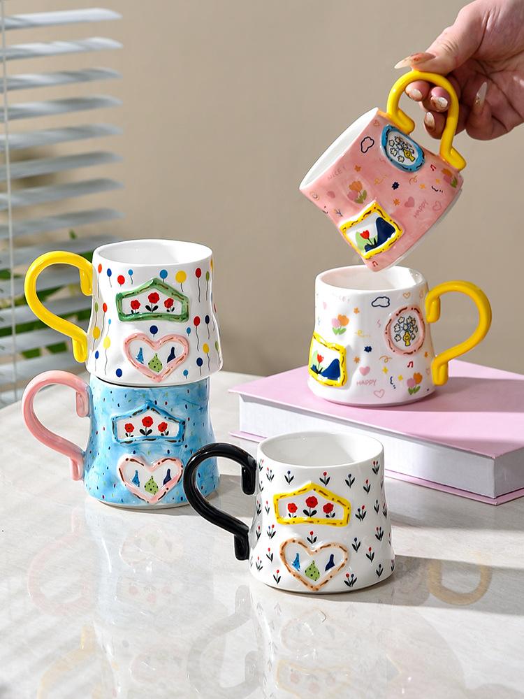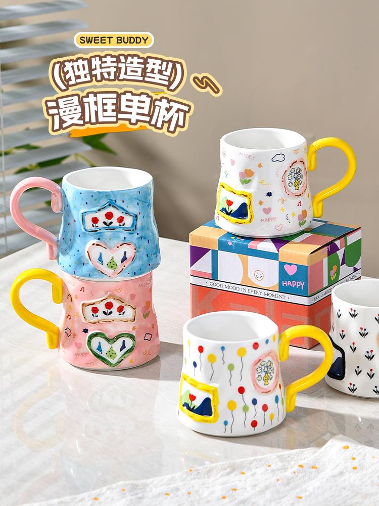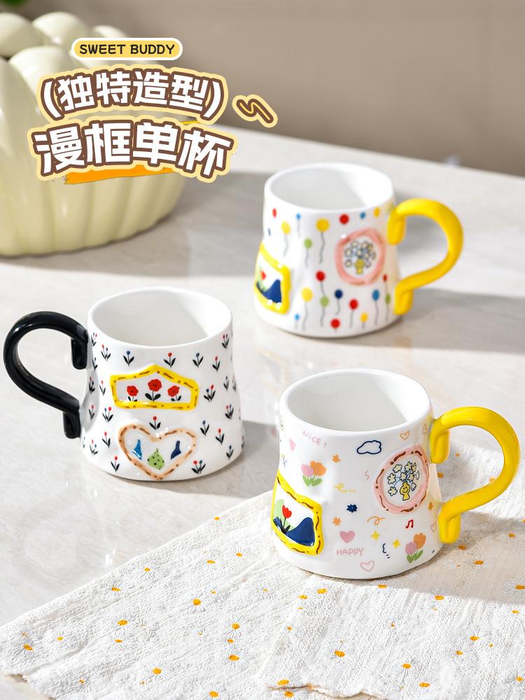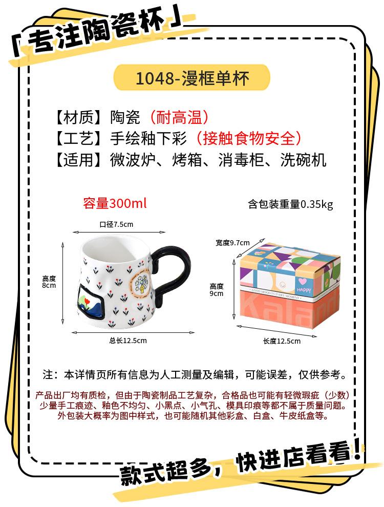 300ml, pintado a mano + calcomanías, apto para microondas, etc., tamaño de la caja 59*39*73. Tasa de empaque 72 (-) peso 0.35kg, tamaño 12.5×9.7×9cm³