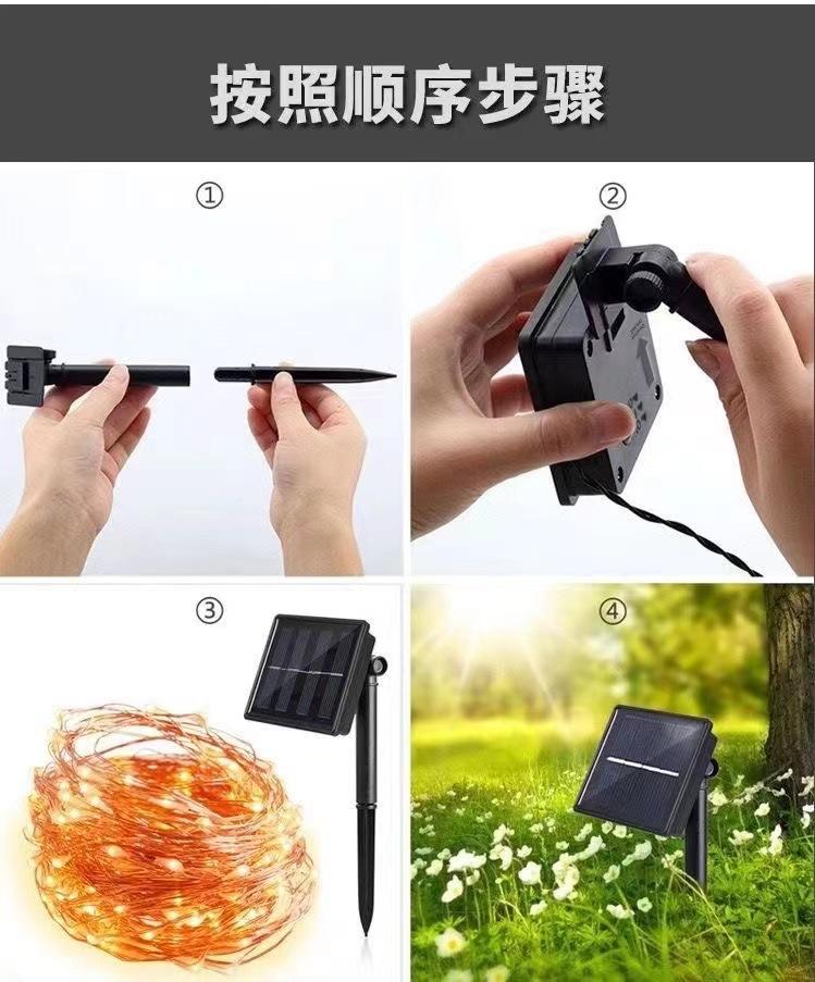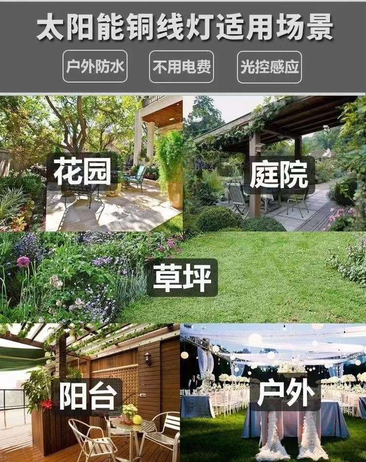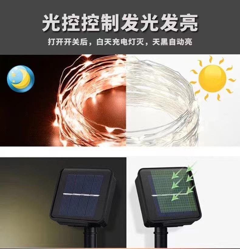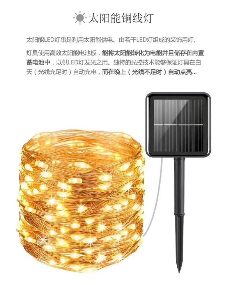 Lámpara solar de alambre de cobre con cadena de colores y tira de luces impermeables para exteriores, decoración de patio, diseño de balcón, paisaje, lámpara de alambre de cobre