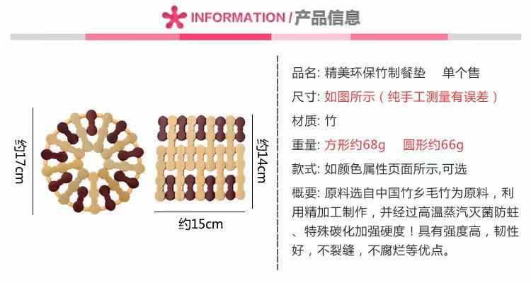 Round bamboo mat 1 pack, Square bamboo mat 1 pack, Round bamboo mat 3 pack, Set of 3 square bamboo coasters, R...
