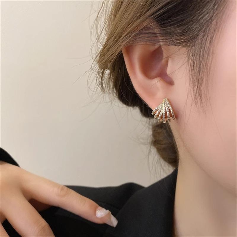 Pendientes multicapa con diamantes de imitación microincrustados de sentido avanzado para mujer 2024 Nueva llegada Lujo ligero Combinación con todo Elegantes Pendientes de moda populares en Internet Pendientes