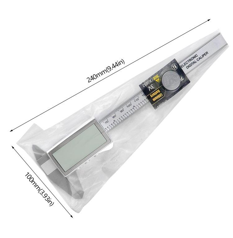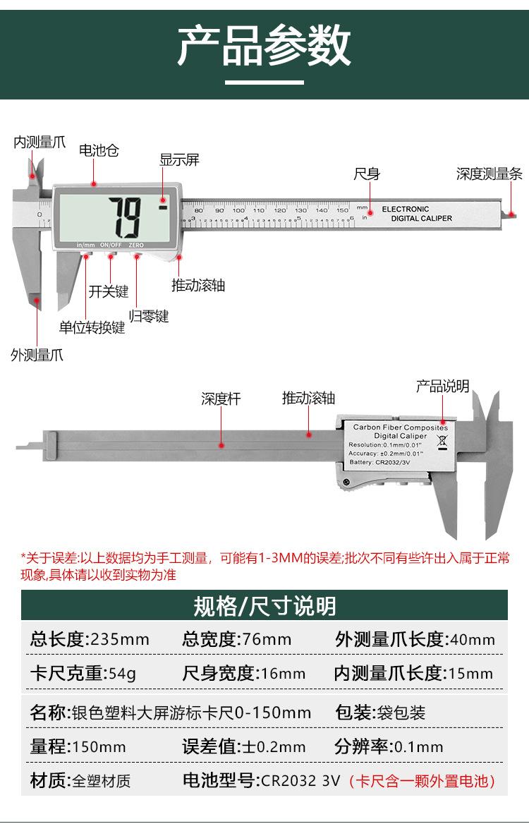 Silver plastic large screen vernier caliper 0-150mm (with 1 battery)