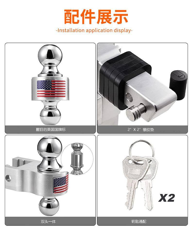 Suministro puntual de gancho de remolque ajustable de aleación de aluminio americano para vehículo, gancho de remolque de coche con doble bola de tracción