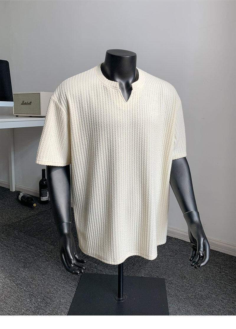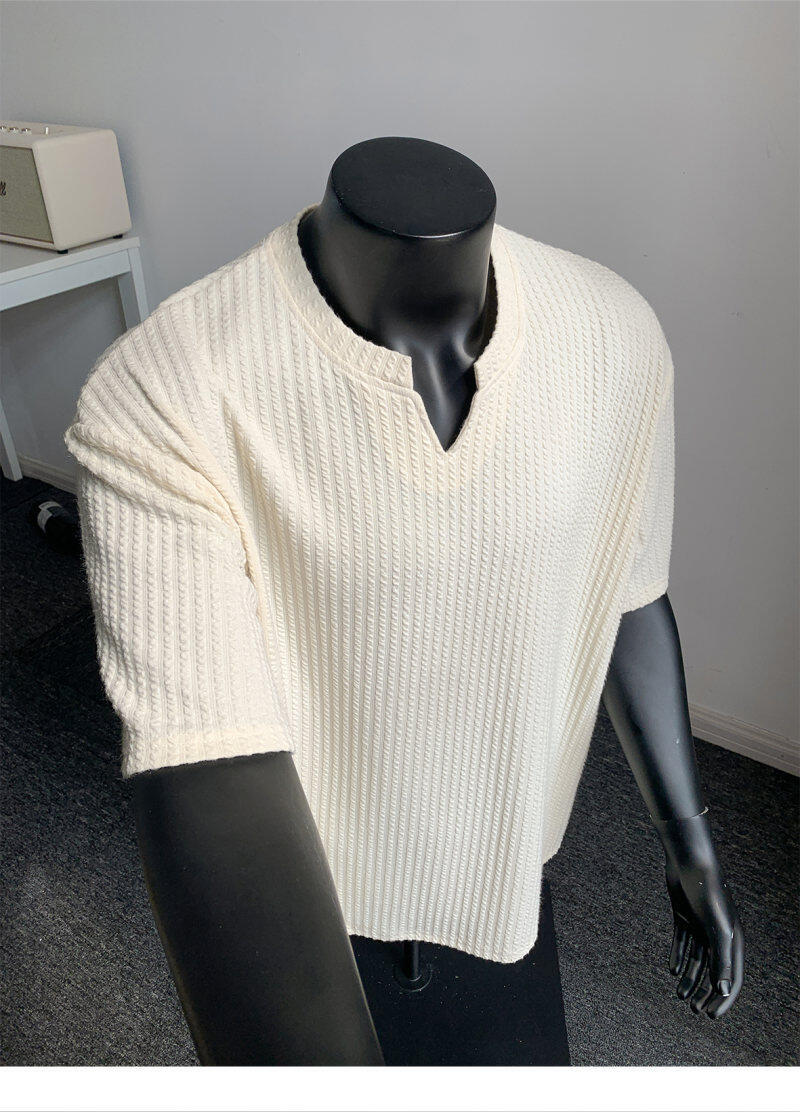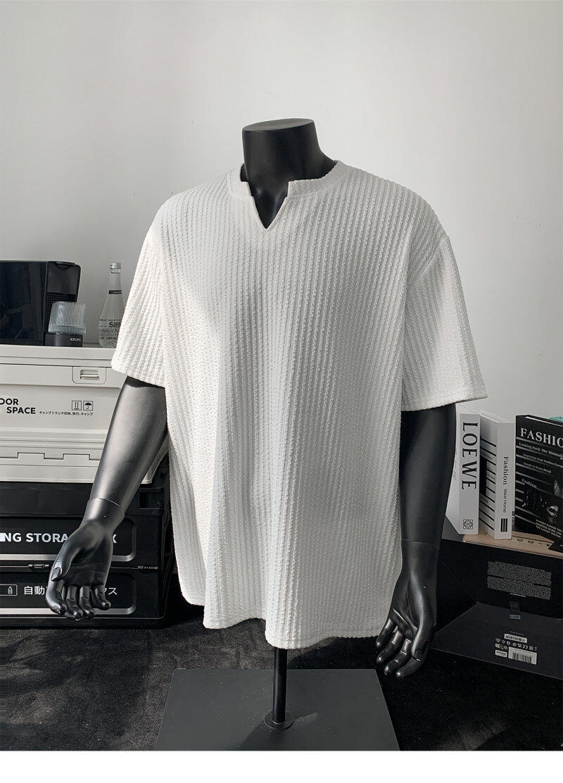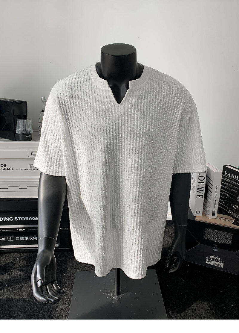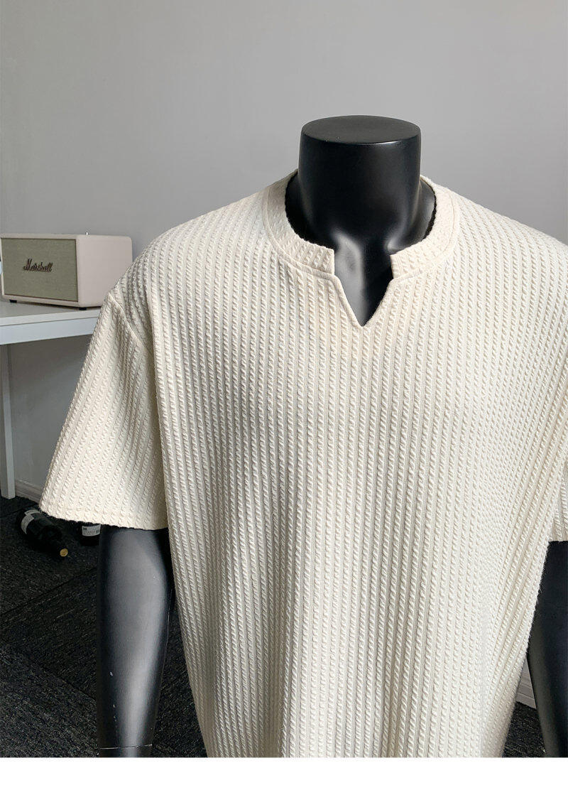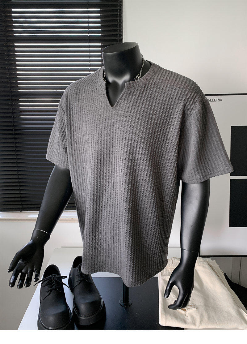 Camiseta de manga corta con cuello en V para hombre, estilo americano, juvenil, de color liso, sencilla, a rayas, holgada e informal, novedad de verano de 2025