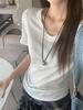 Camiseta de manga corta con degradado azul para mujer, novedad de verano 2025, diseño superior con hombros descubiertos y diseño informal.