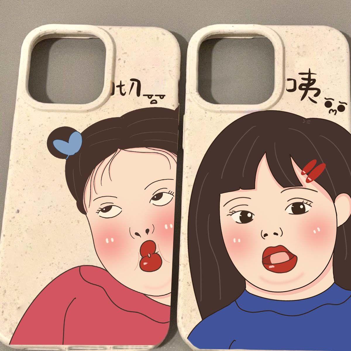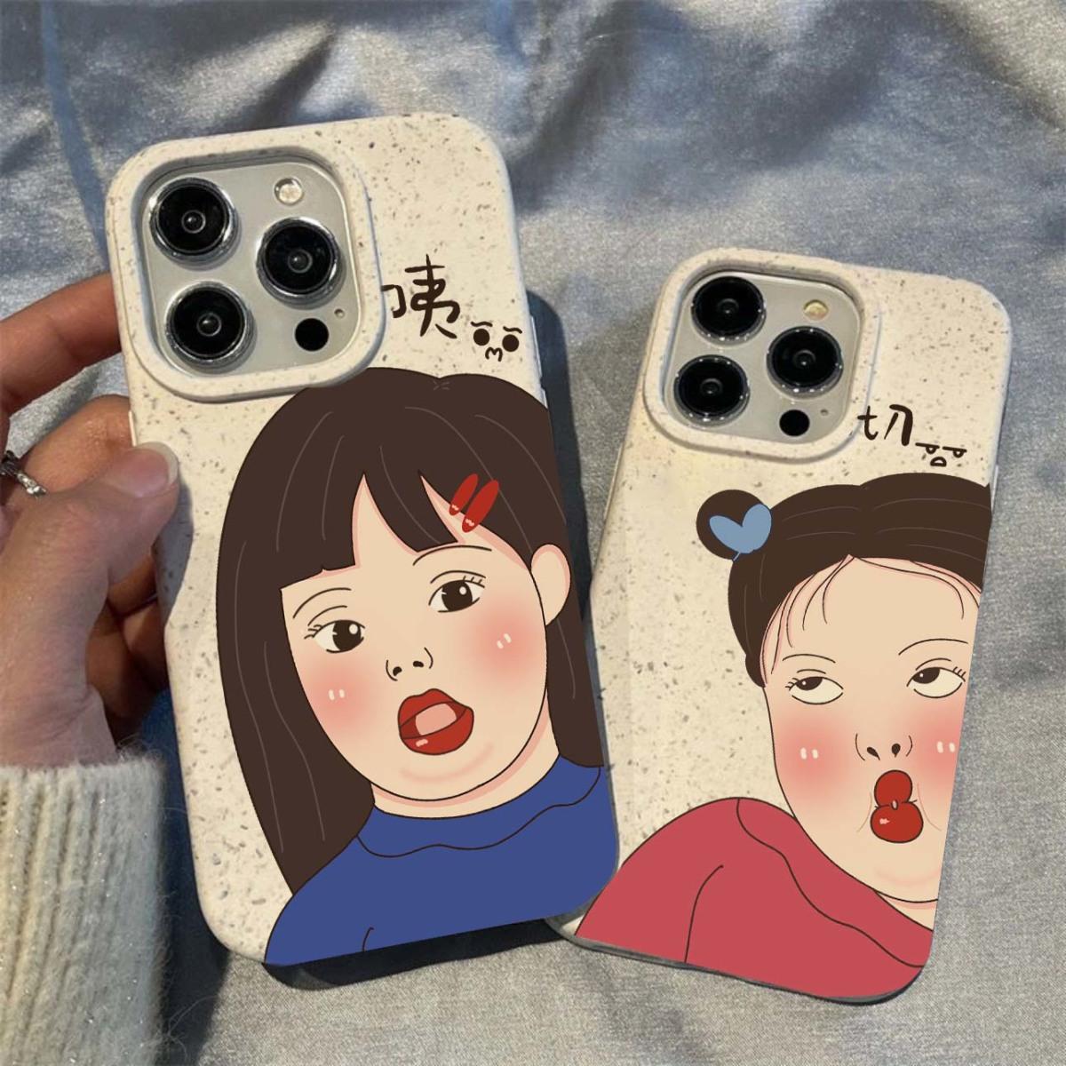 Funda para teléfono Apple 16promax con expresión divertida, iPhone 15, linda caricatura 14, carcasa de trigo esmerilada XR XS