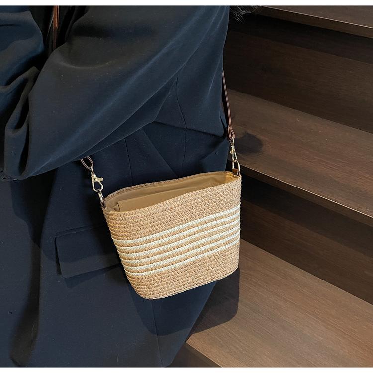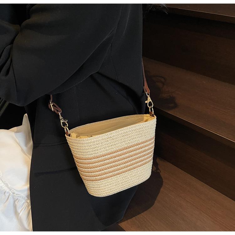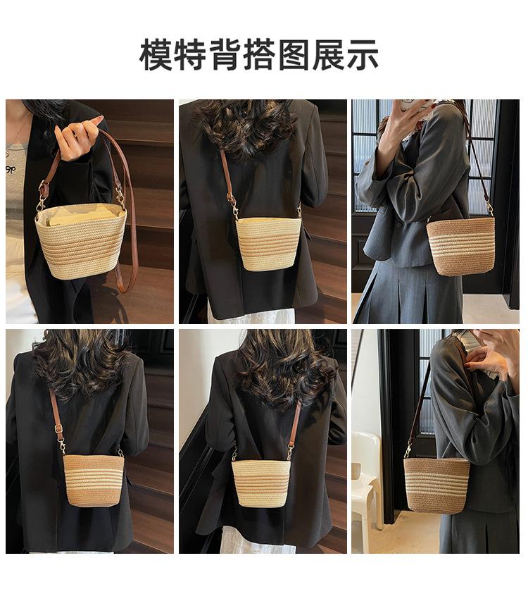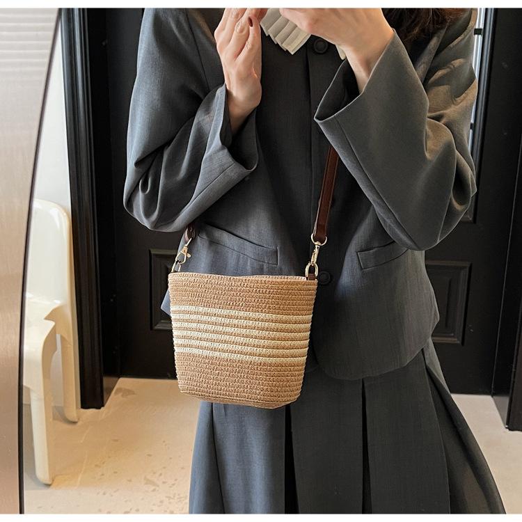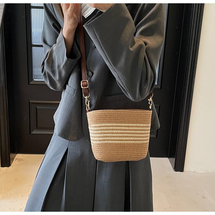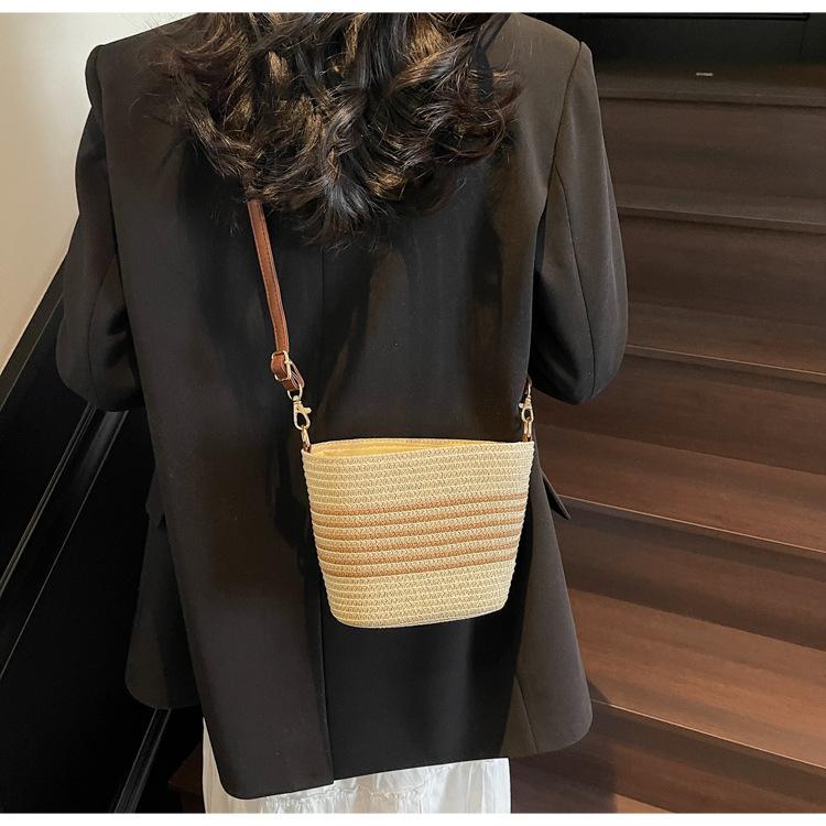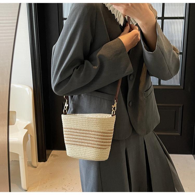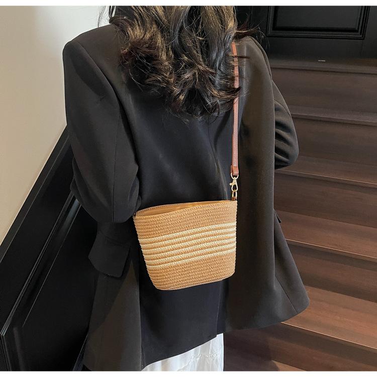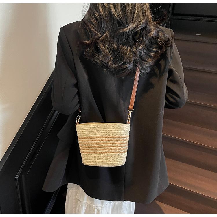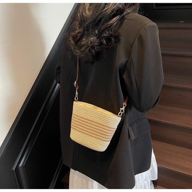Bolso de paja tejida para mujer, nueva tendencia de moda 2025, diseño de nicho, bandolera tipo cubo, bolso de playa para todo tipo de combinaciones.