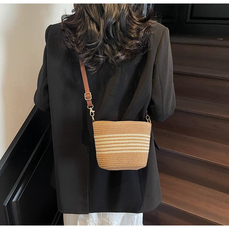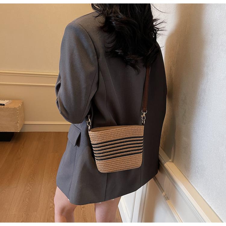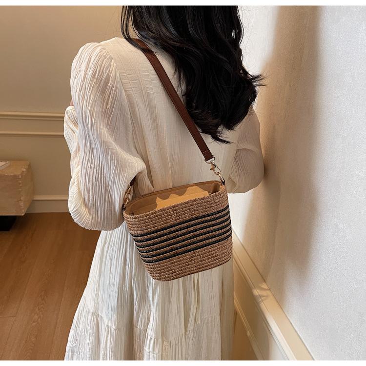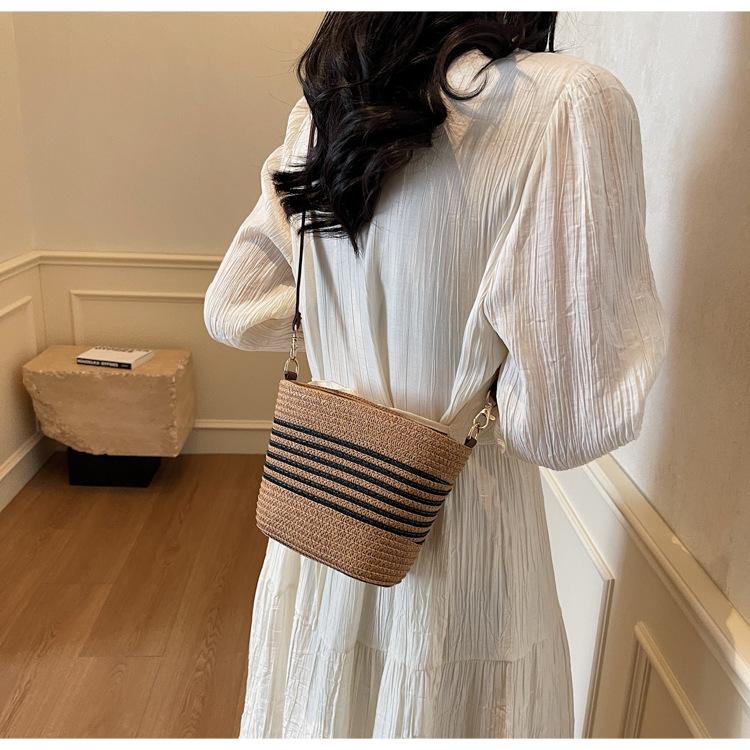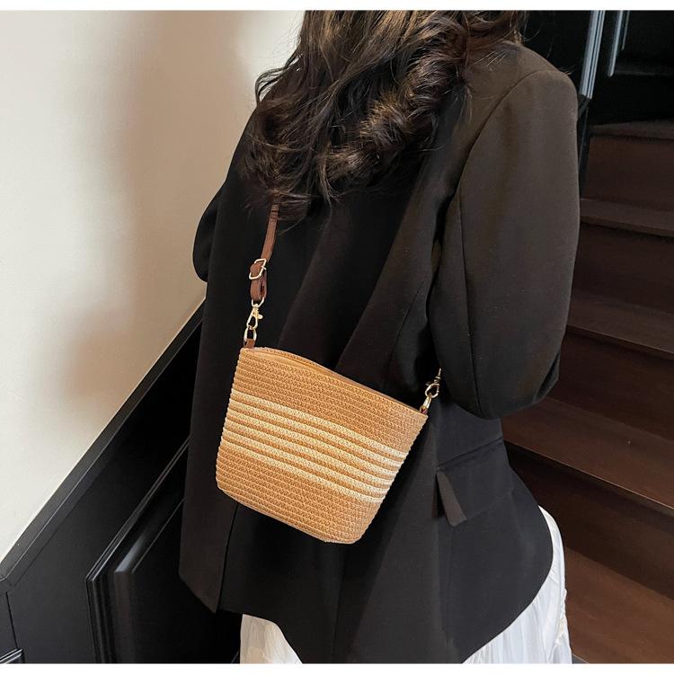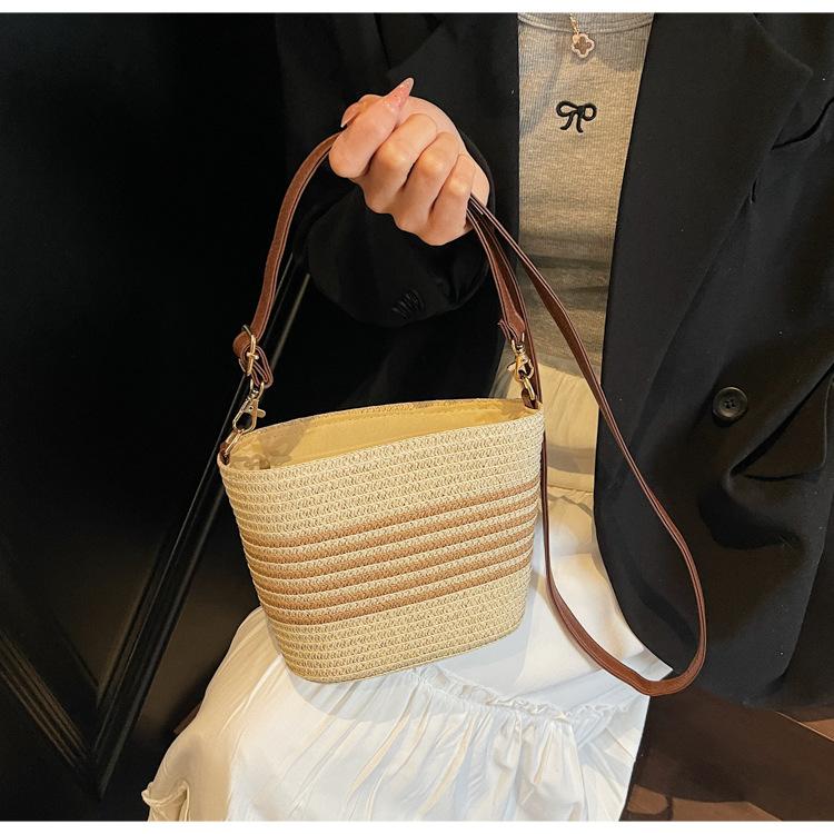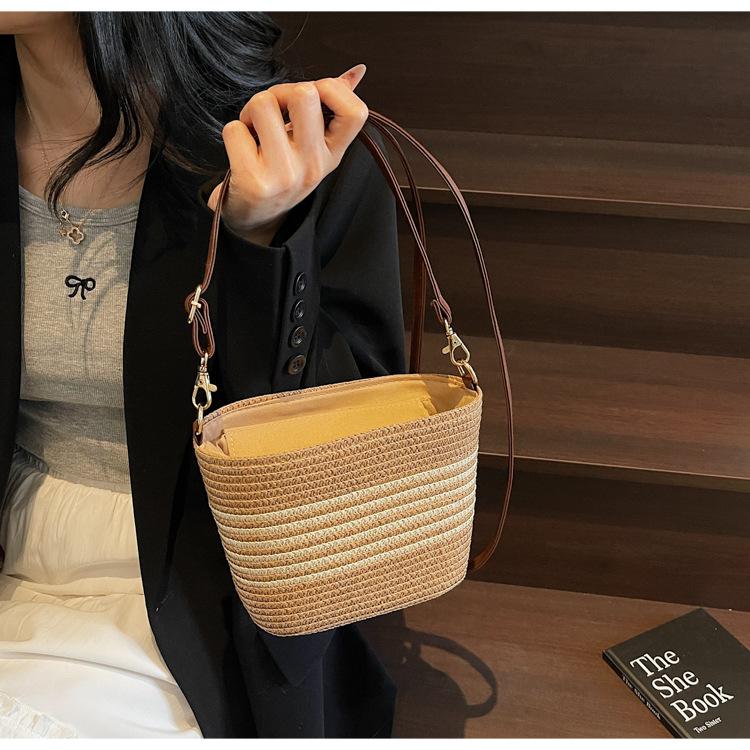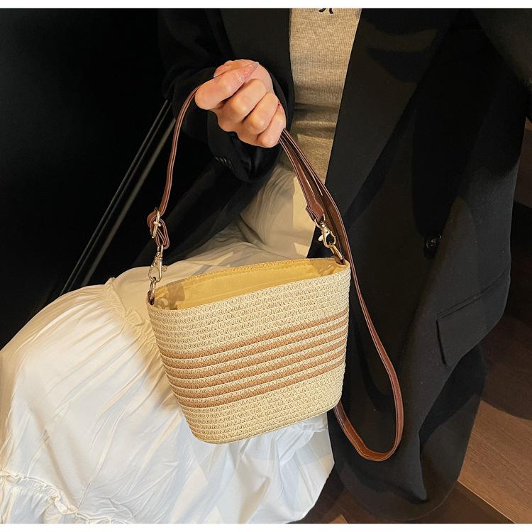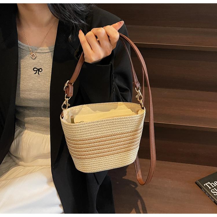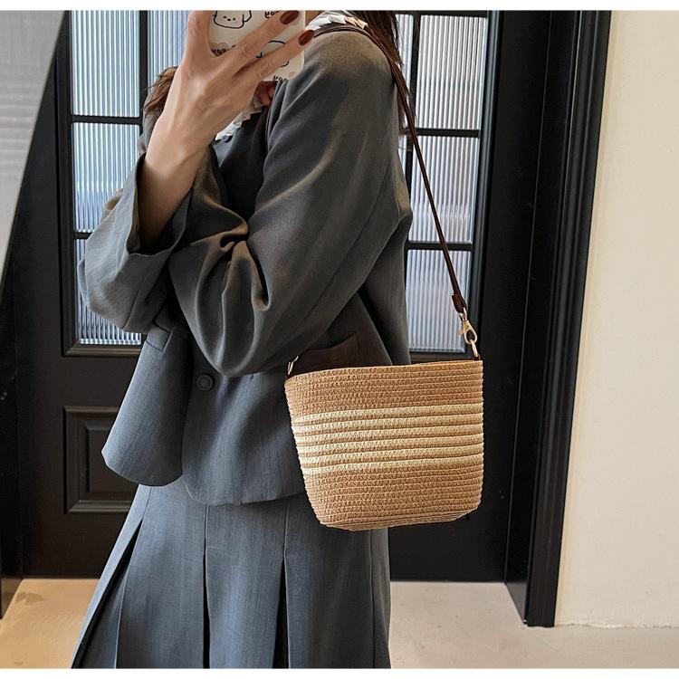 Bolso de paja tejida para mujer, nueva tendencia de moda 2025, diseño de nicho, bandolera tipo cubo, bolso de playa para todo tipo de combinaciones.