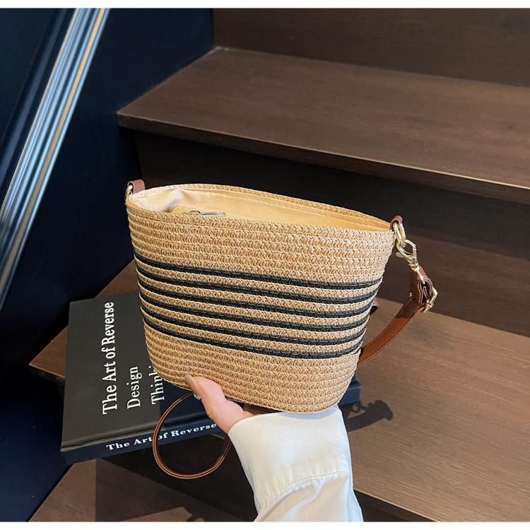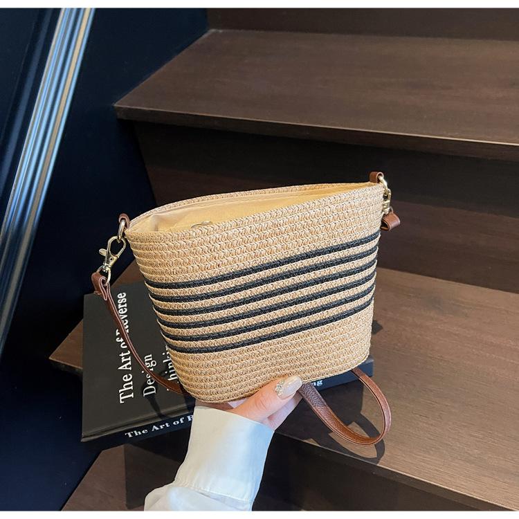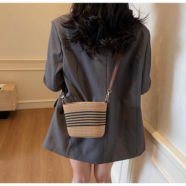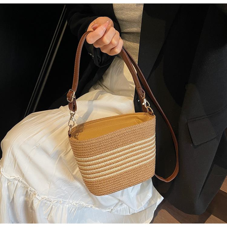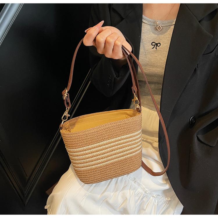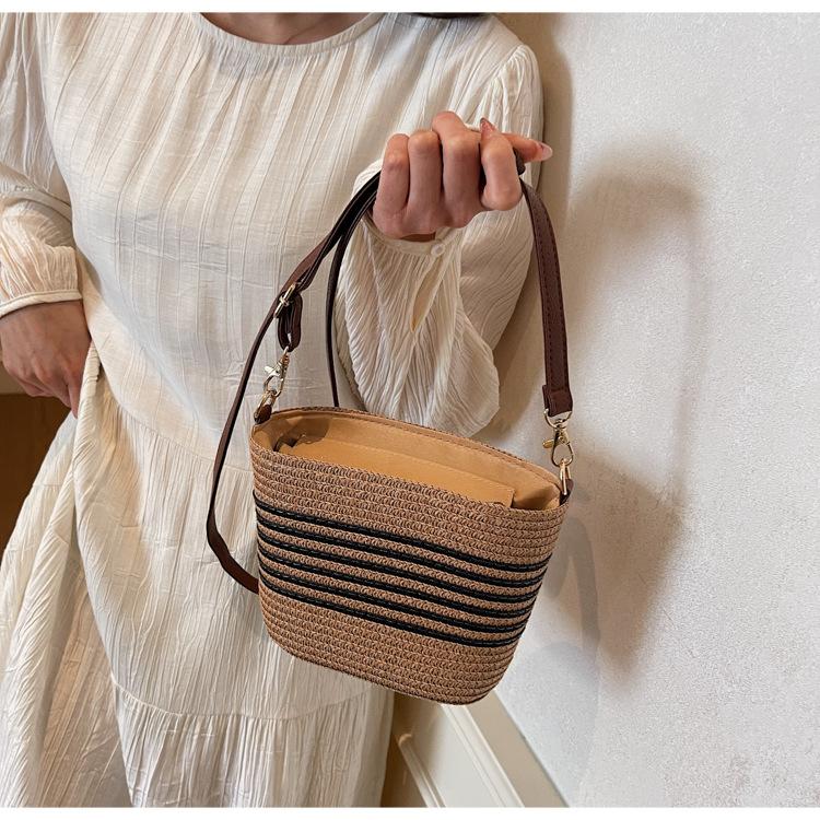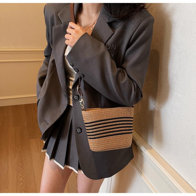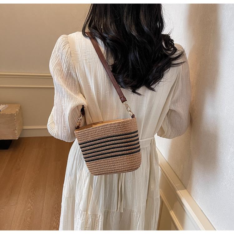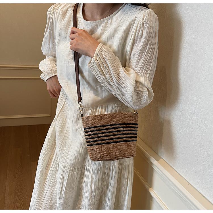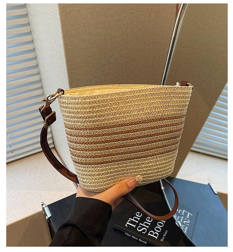 Bolso de paja tejida para mujer, nueva tendencia de moda 2025, diseño de nicho, bandolera tipo cubo, bolso de playa para todo tipo de combinaciones.