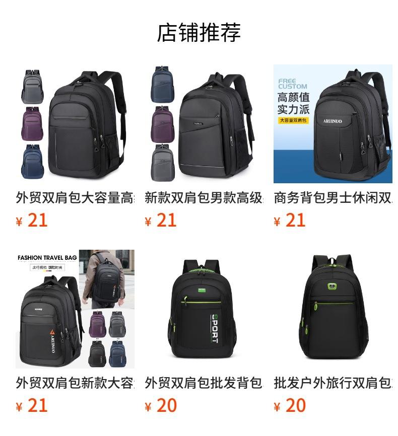 Mochila al por mayor Mochila para hombre de gran capacidad Bolsa para computadora de negocios Nueva bolsa de viaje ligera Mochila escolar para jóvenes