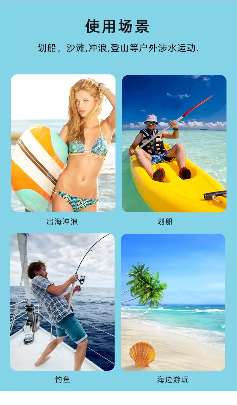 Diving, Mountain climbing, Beach, Fishing, Outdoor