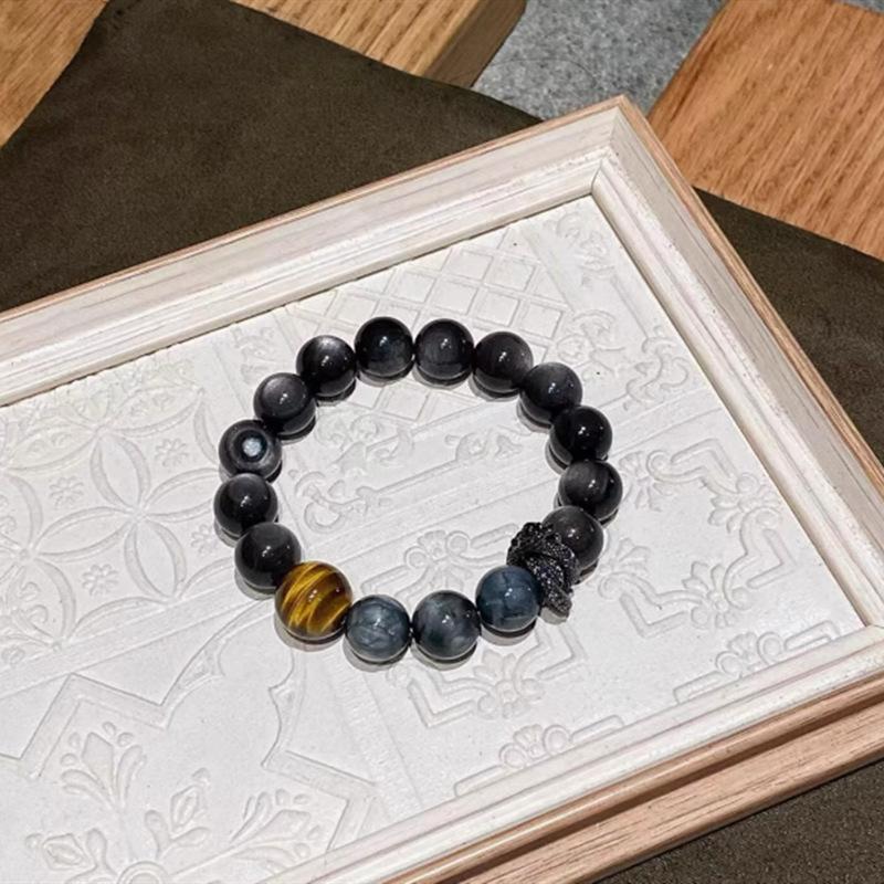 Compra Pulsera de hombre con piedra de ojo de águila, obsidiana plateada, ojo de tigre amarillo, regalo de cumpleaños de viento oscuro, 2025 al por mayor en Joom.pro