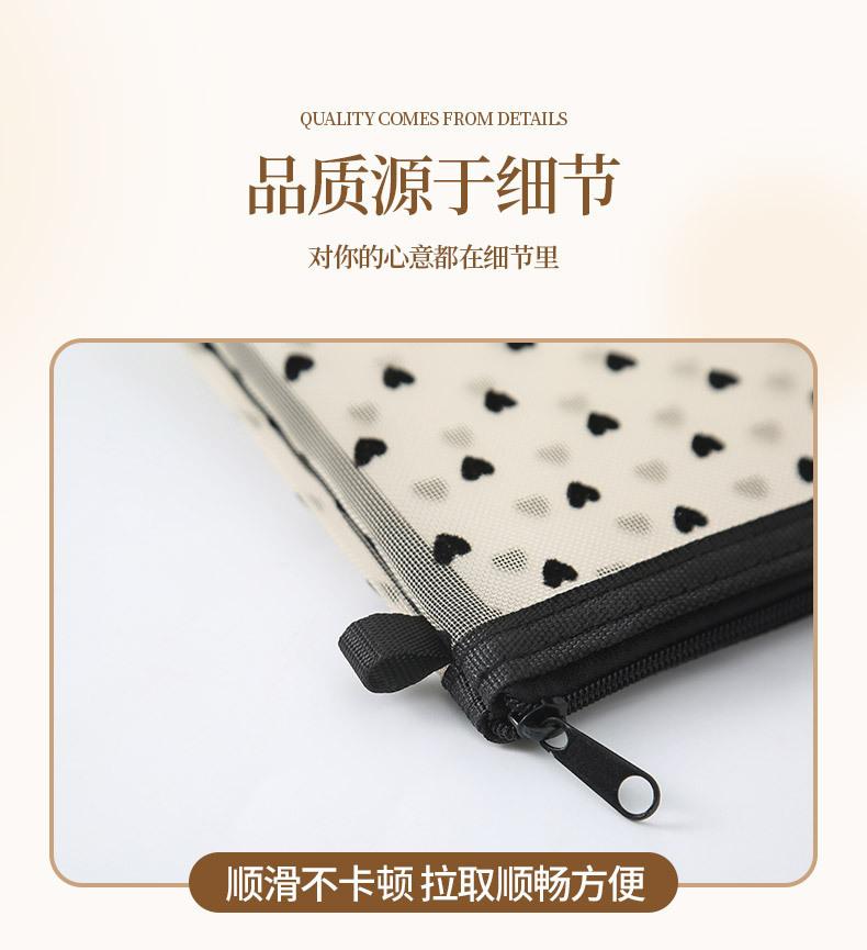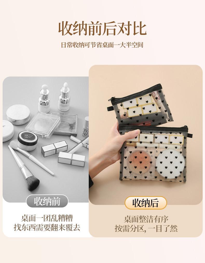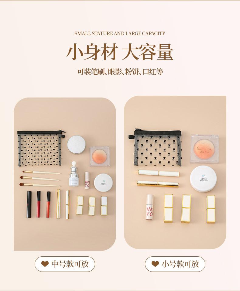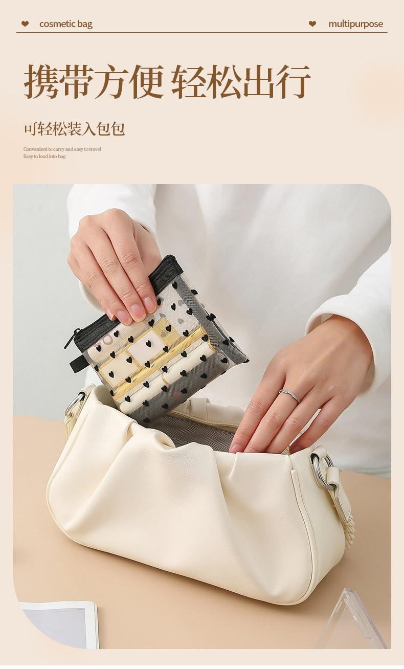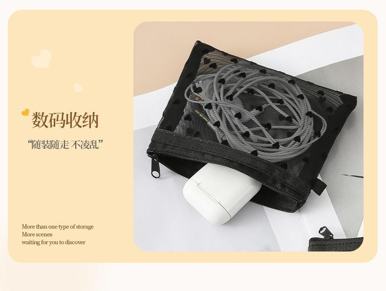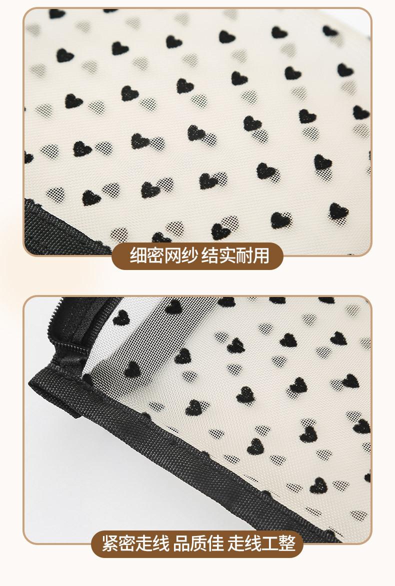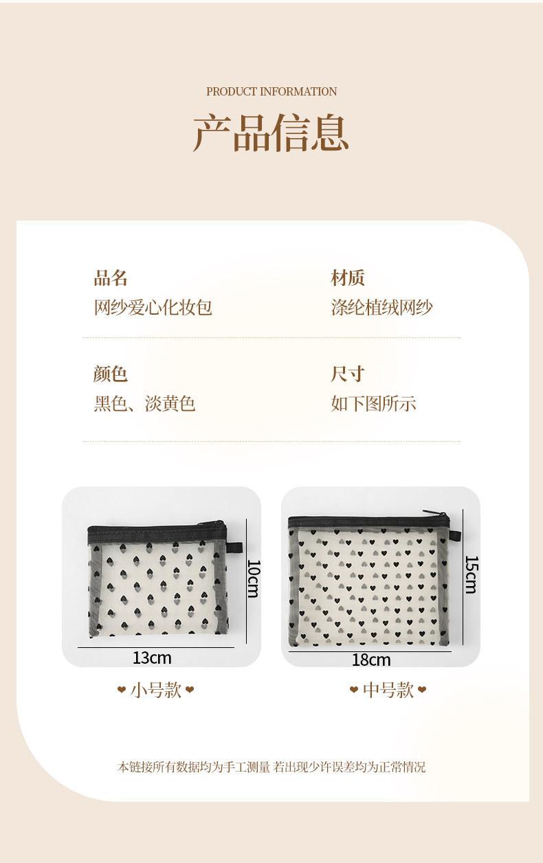 Bolsa de malla para cosméticos, bolsa de viaje portátil para lavado en caliente transfronterizo, bolsa de almacenamiento de malla con flocado, bolsa de almacenamiento de amor al por mayor
