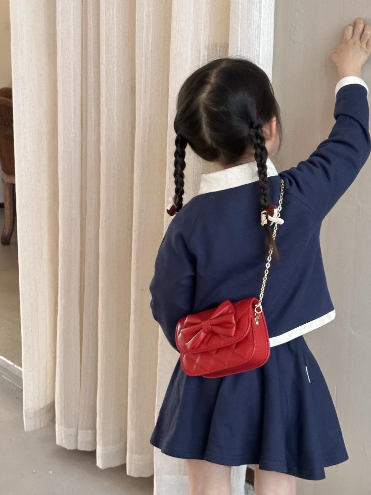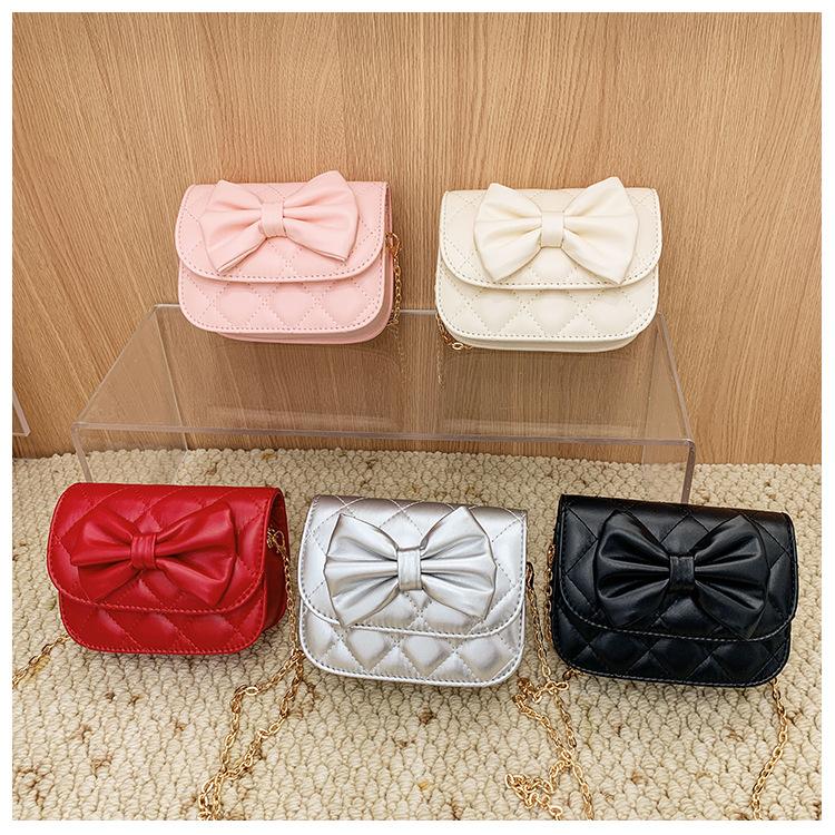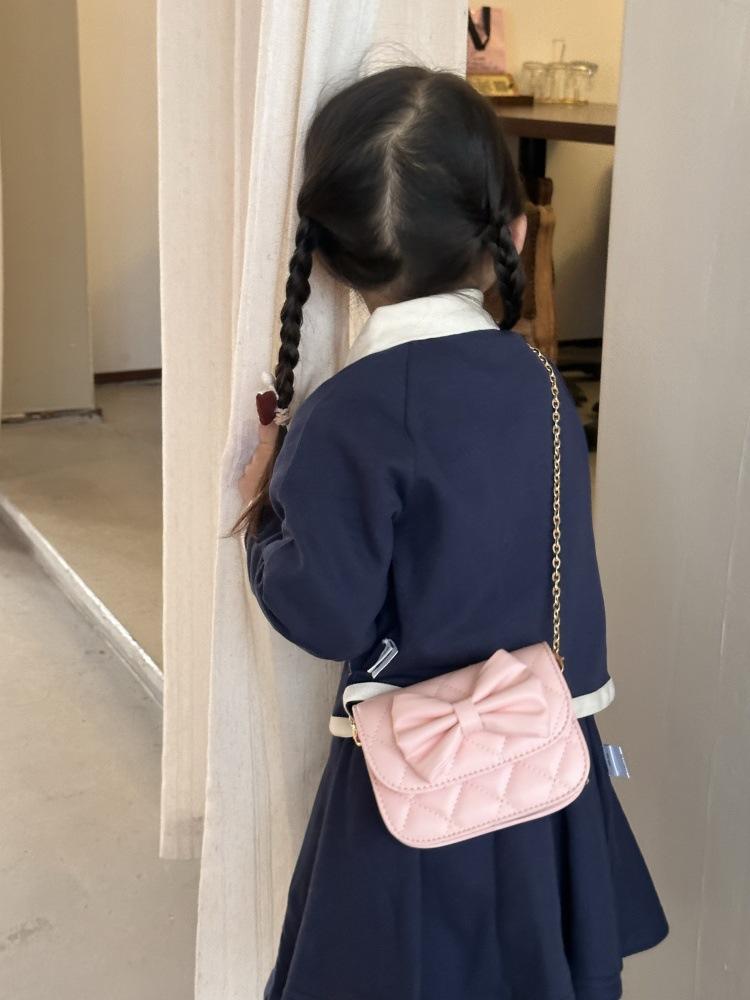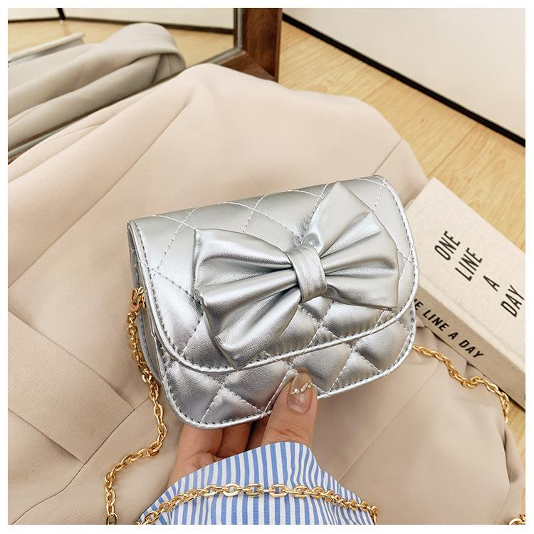 Bolso para niña, bonito y a la moda, con lazo y cadena, de princesa, pequeño, cuadrado, con accesorios.