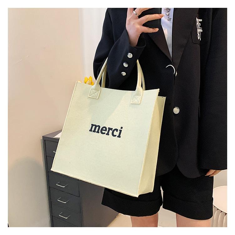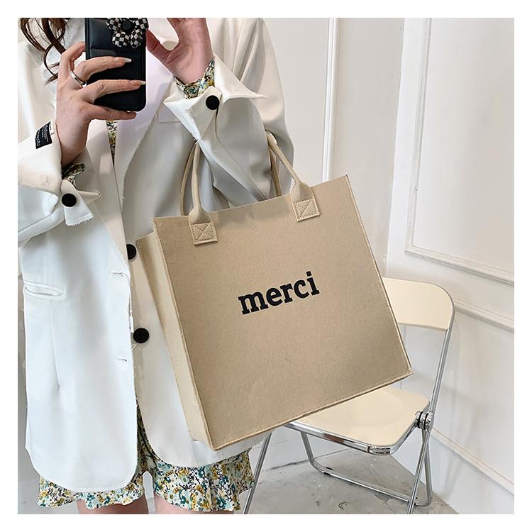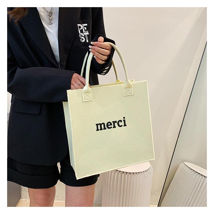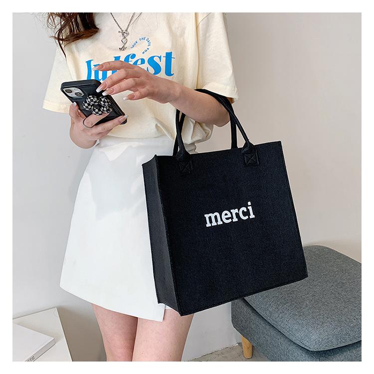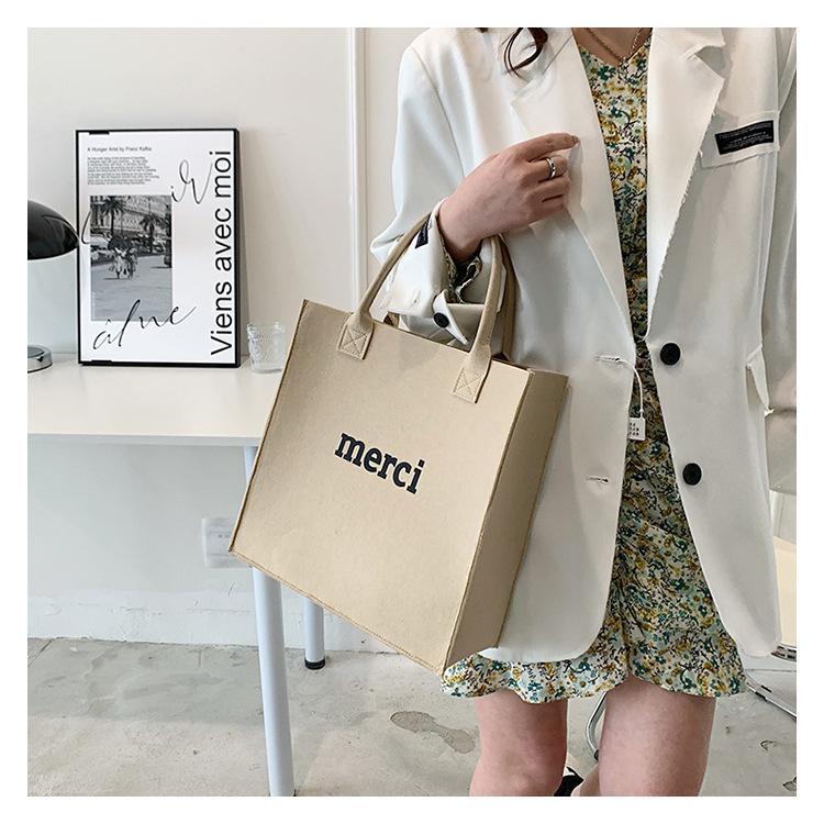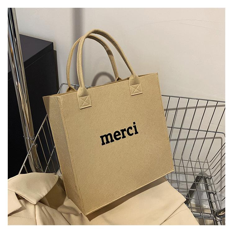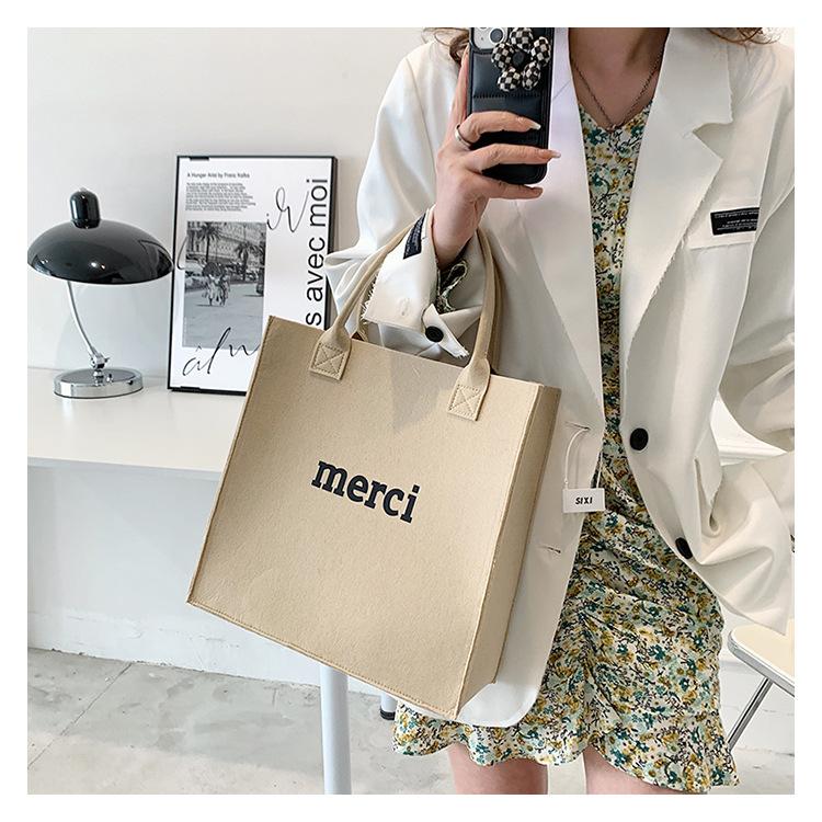 Bolso Tote de Fieltro de Gran Capacidad de un Hombro para Mujer con Estampado de Letras, Moda Retro Simple Casual para Viaje