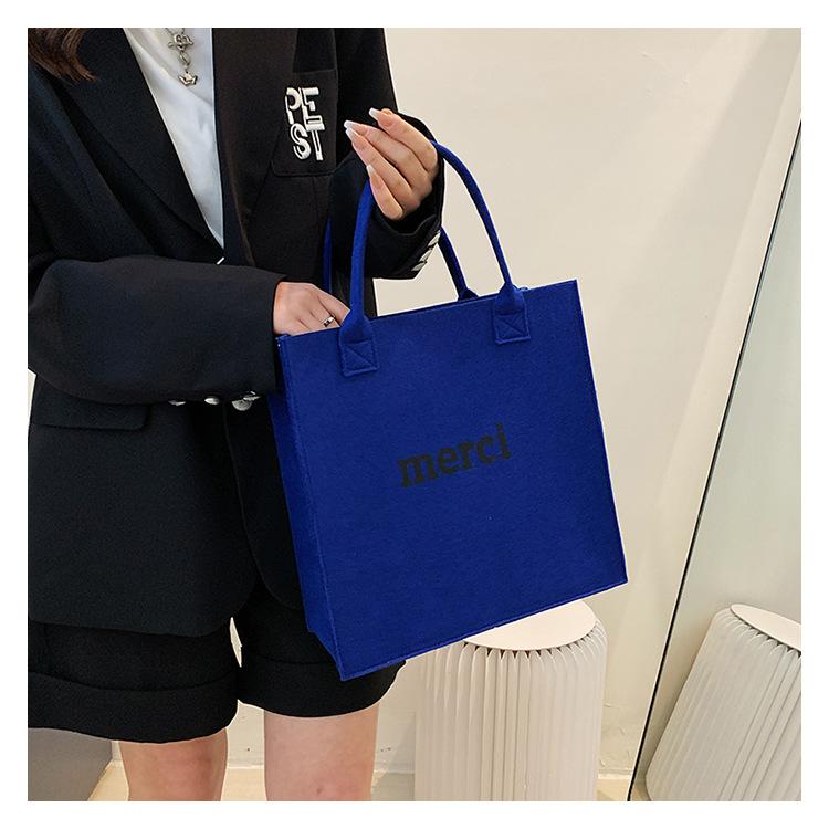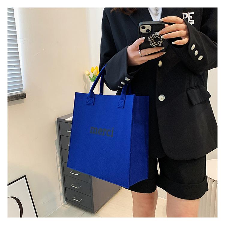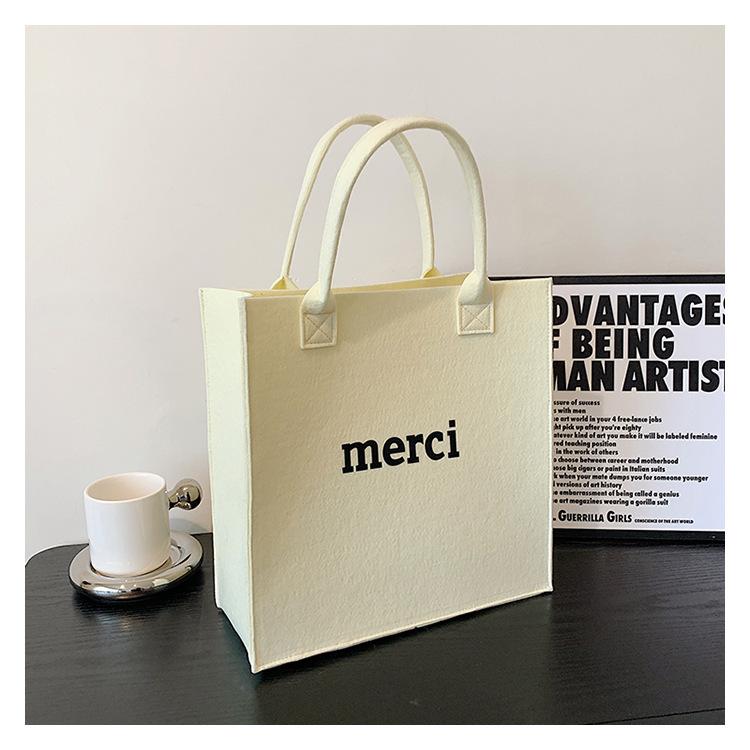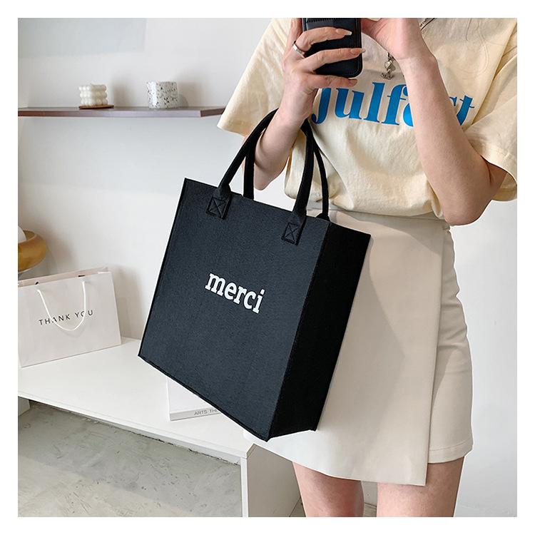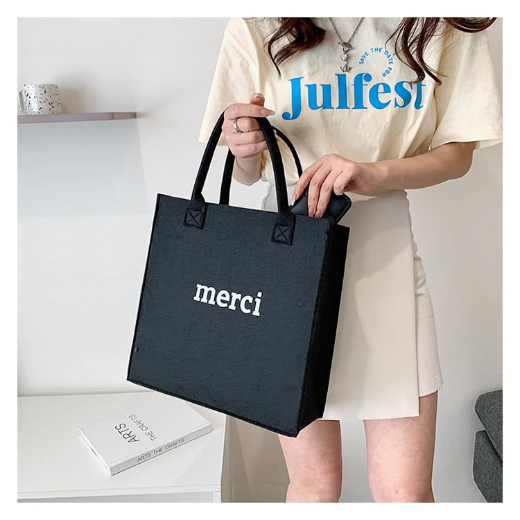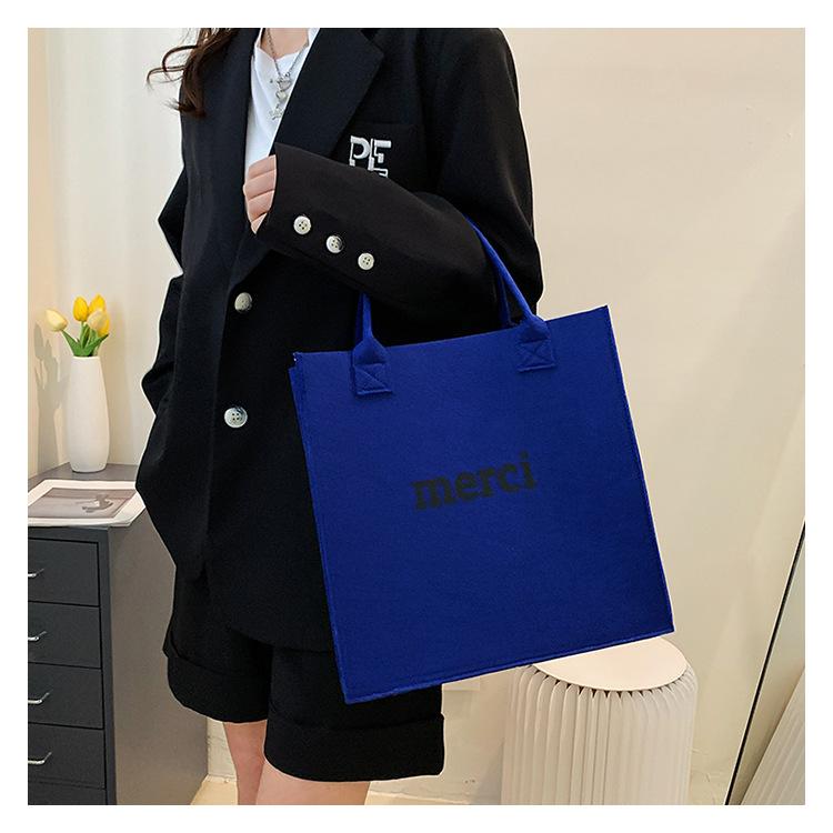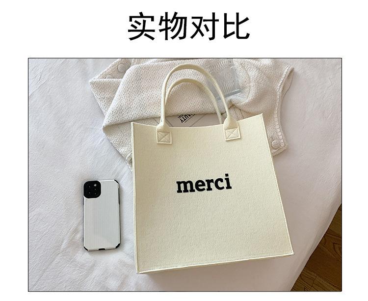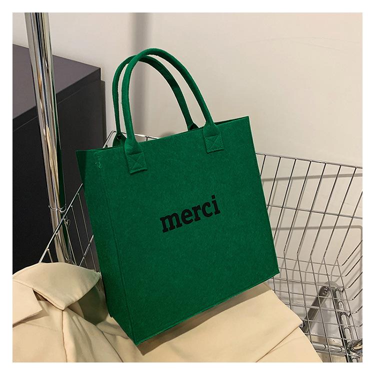 Bolso Tote de Fieltro de Gran Capacidad de un Hombro para Mujer con Estampado de Letras, Moda Retro Simple Casual para Viaje