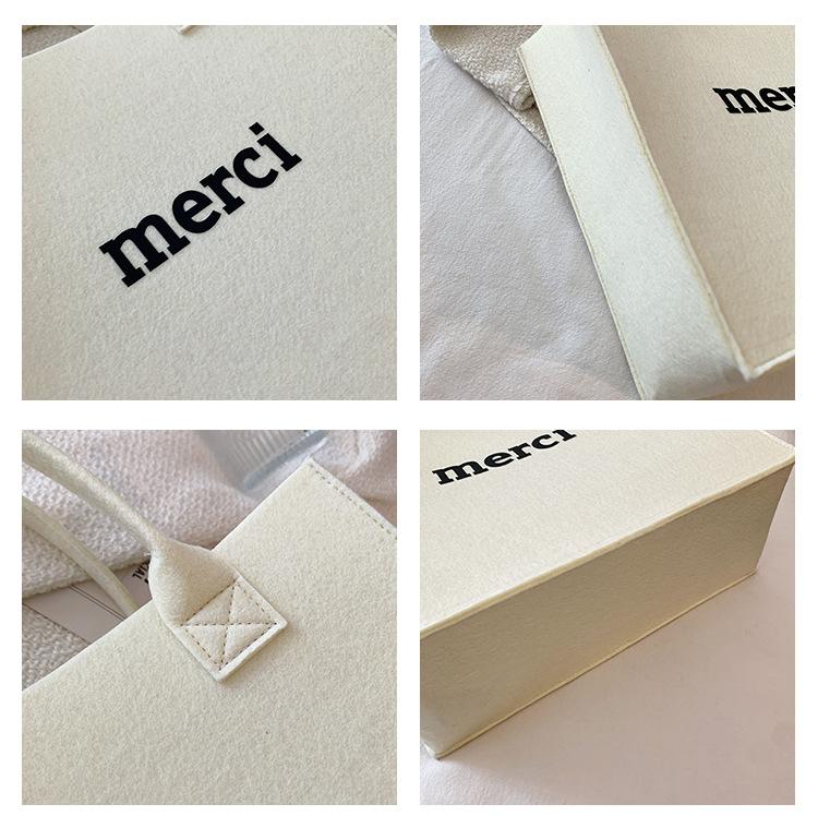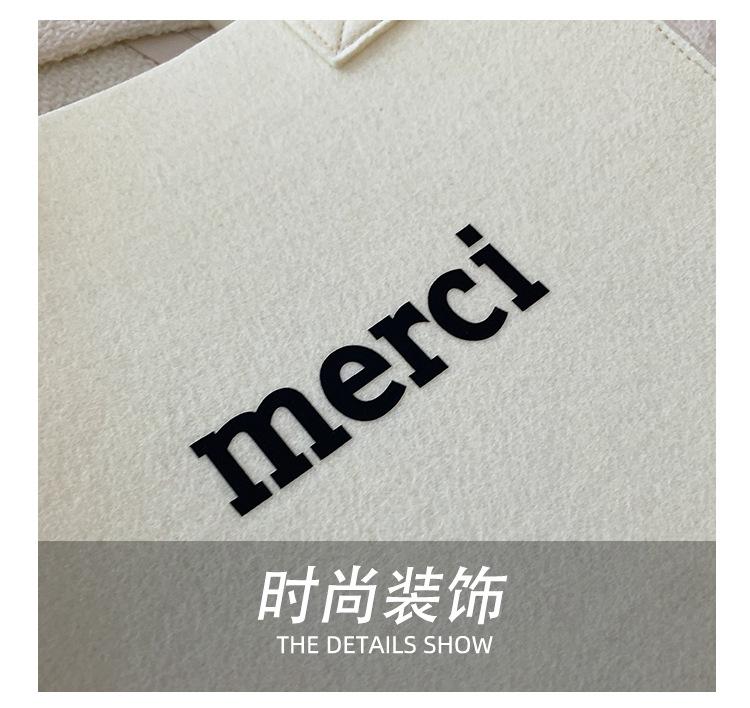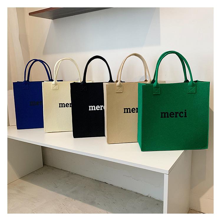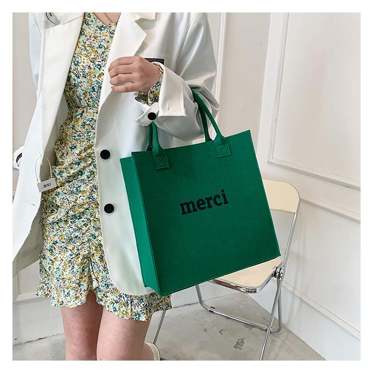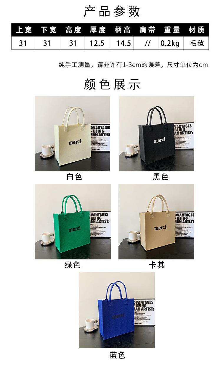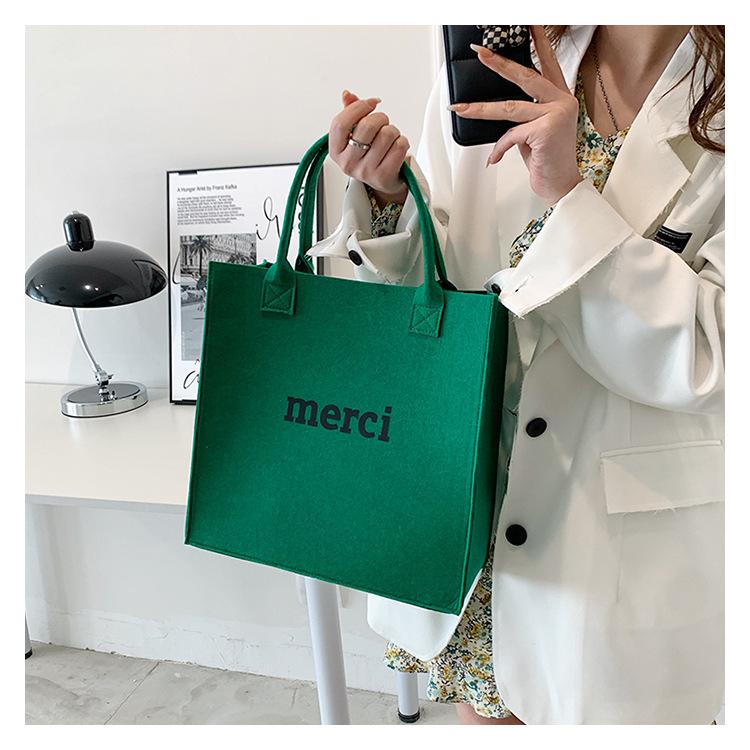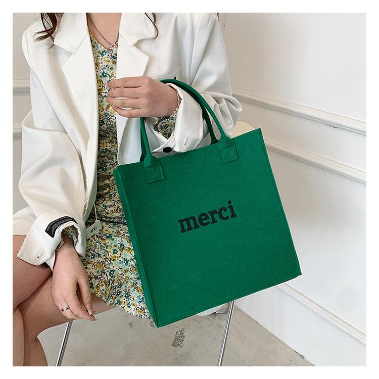 Bolso Tote de Fieltro de Gran Capacidad de un Hombro para Mujer con Estampado de Letras, Moda Retro Simple Casual para Viaje