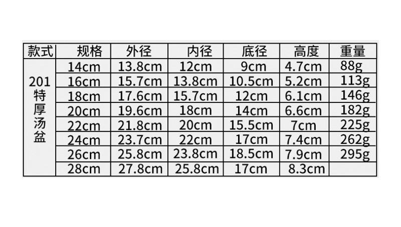 20cm, 22cm, 24cm, 26cm, 28cm, 30cm, 32cm