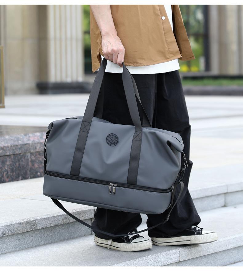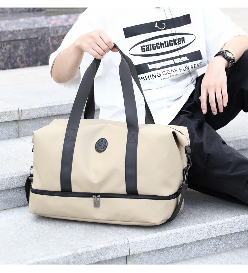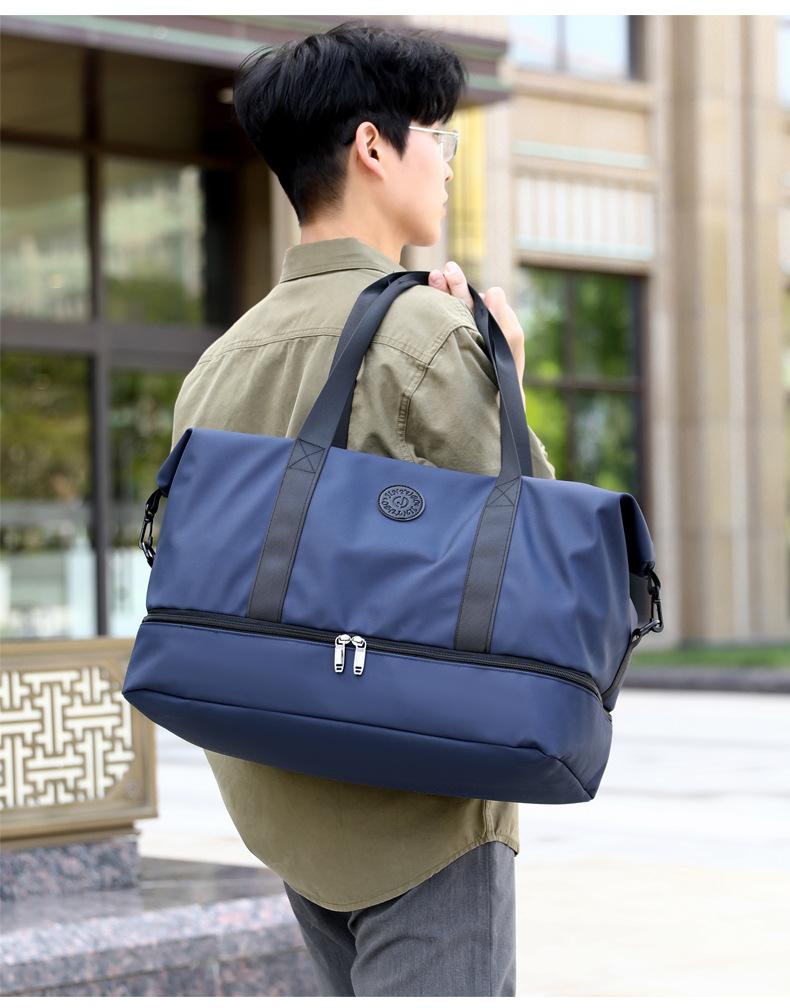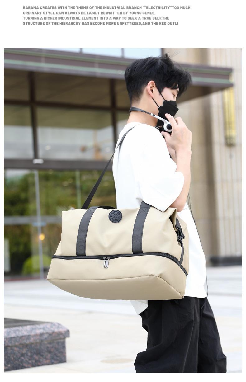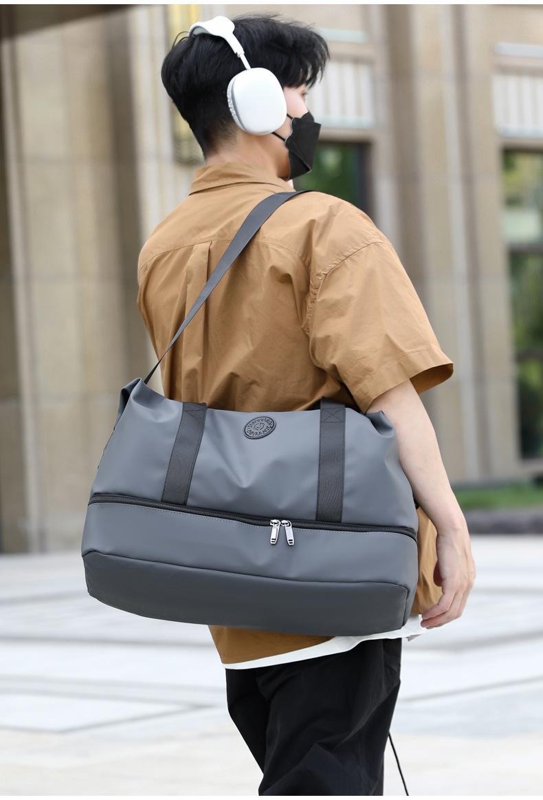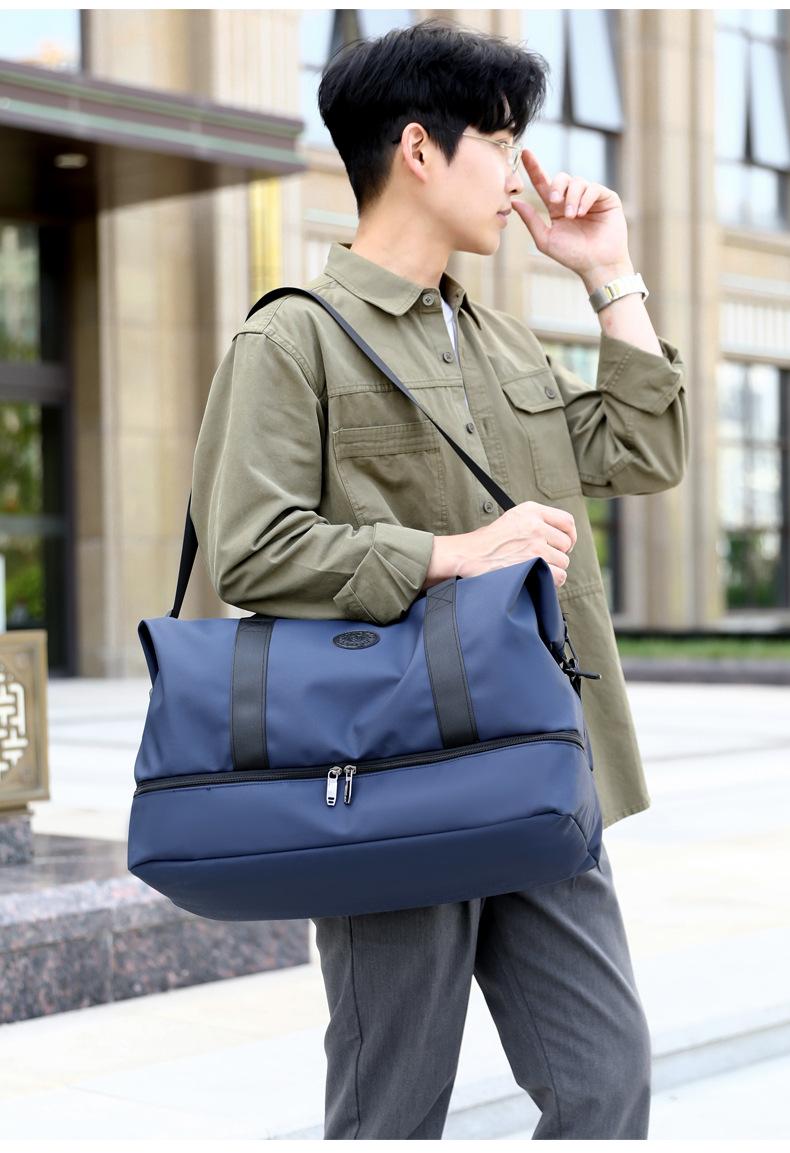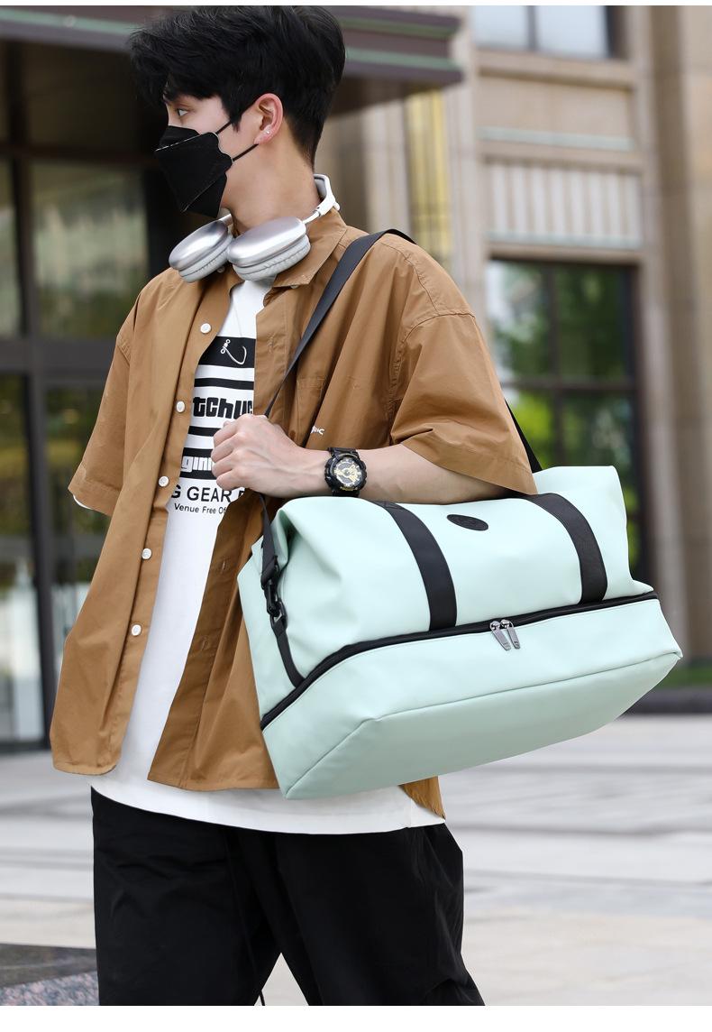 Bolsa de viaje de gran capacidad para hombres y mujeres, portátil, para distancias cortas, sencilla, ligera, para almacenamiento deportivo, separada para ropa seca y húmeda.
