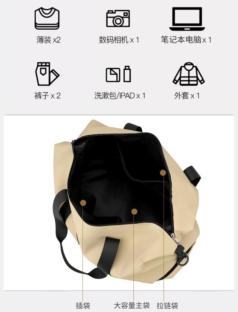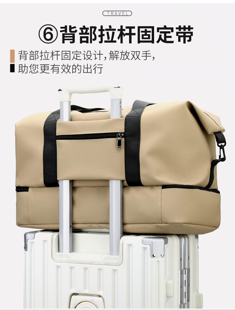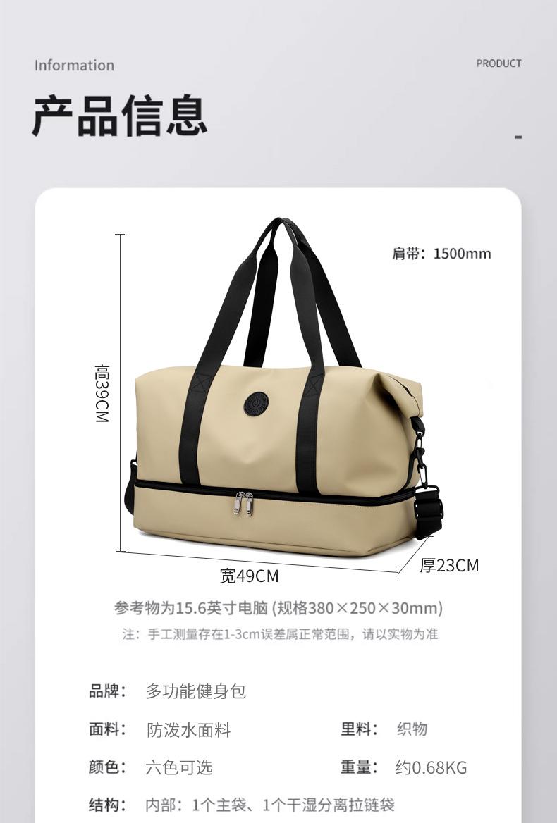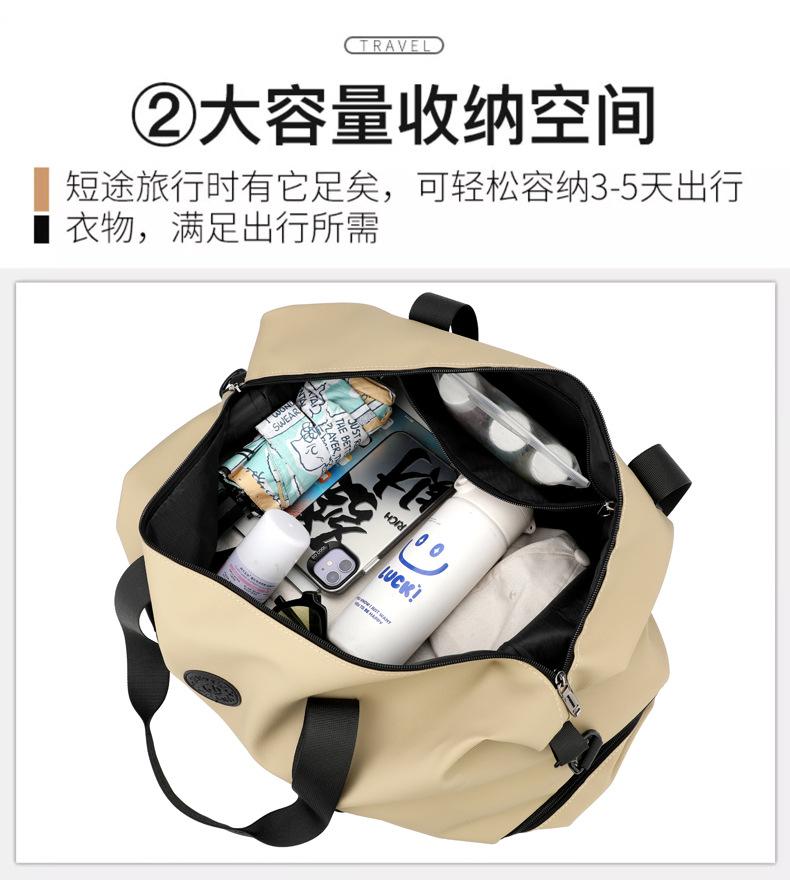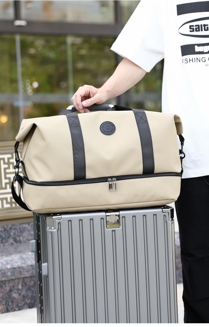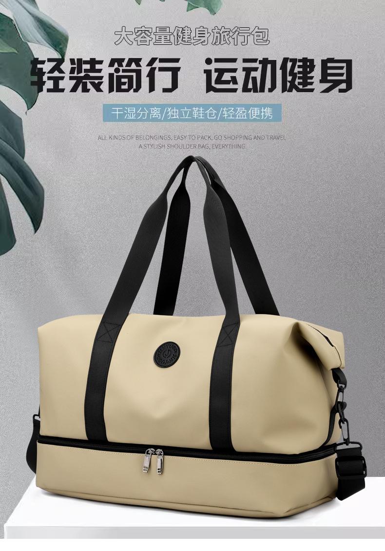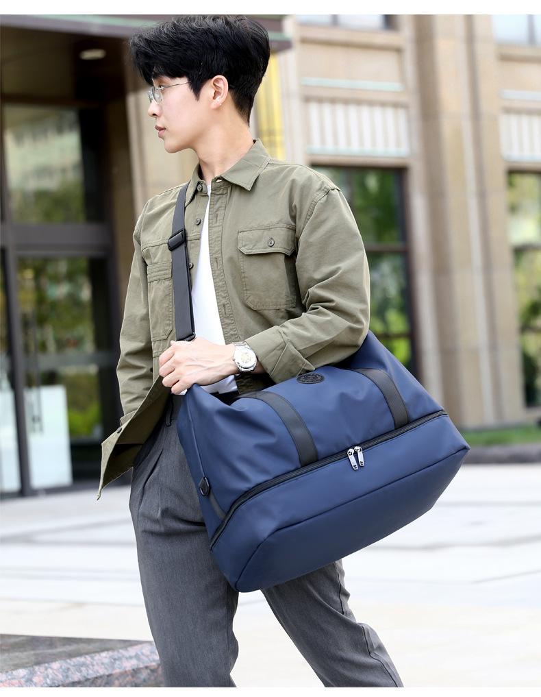 Bolsa de viaje de gran capacidad para hombres y mujeres, portátil, para distancias cortas, sencilla, ligera, para almacenamiento deportivo, separada para ropa seca y húmeda.