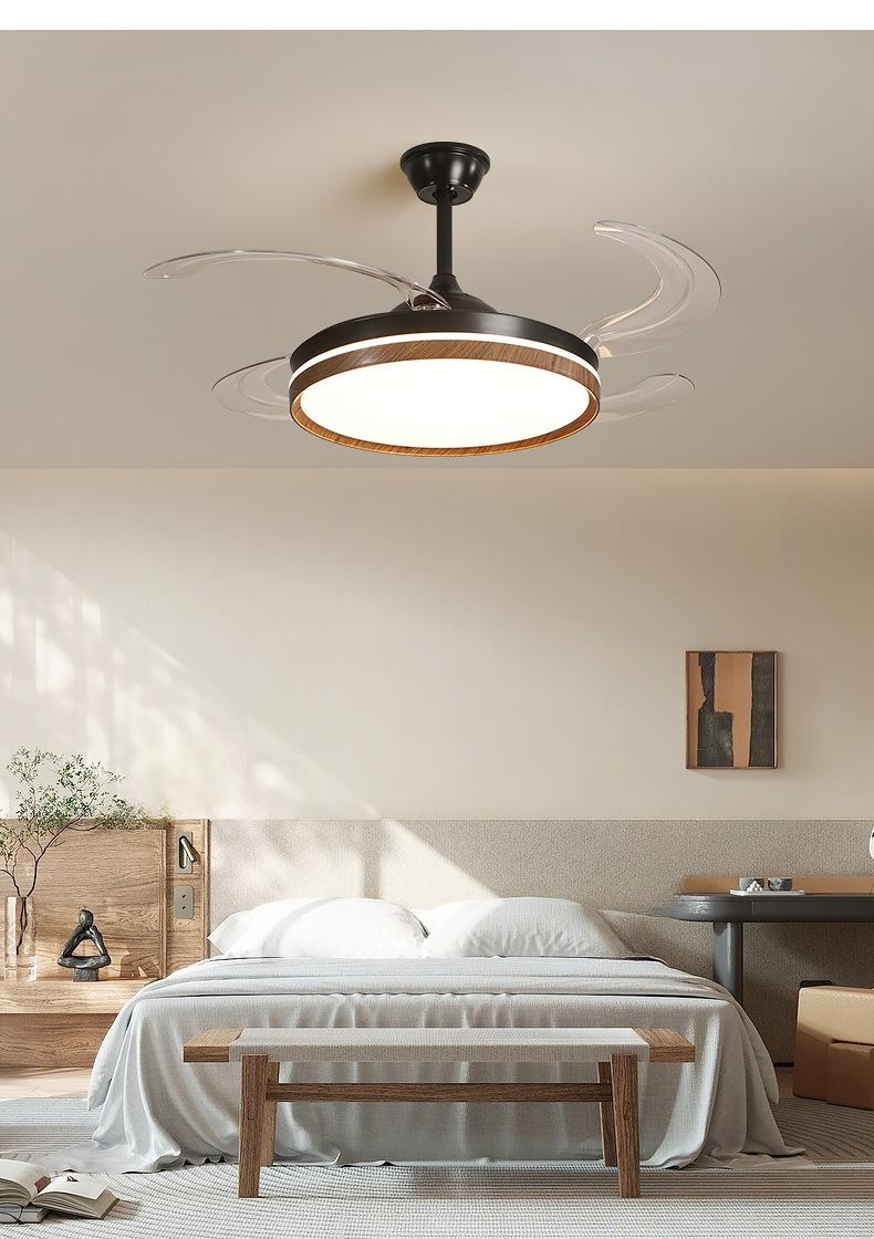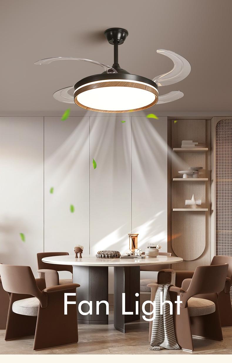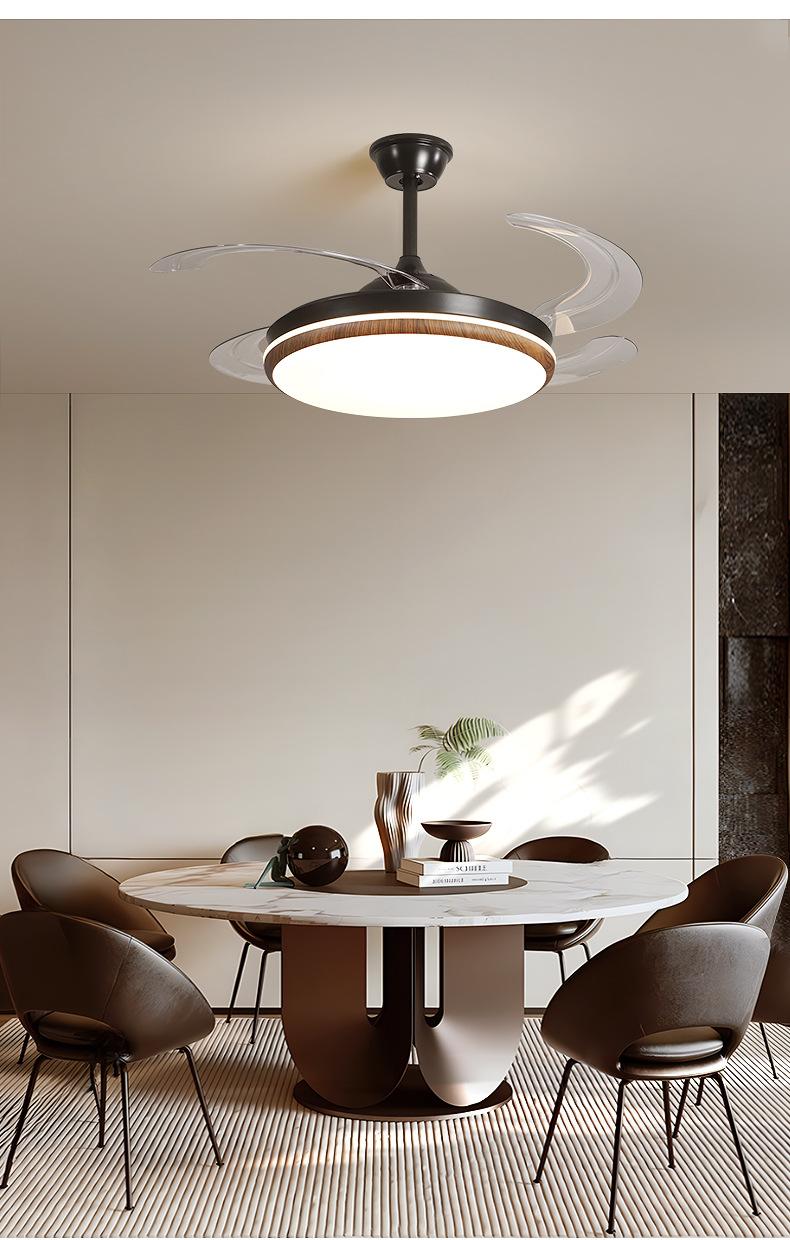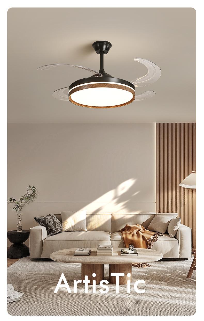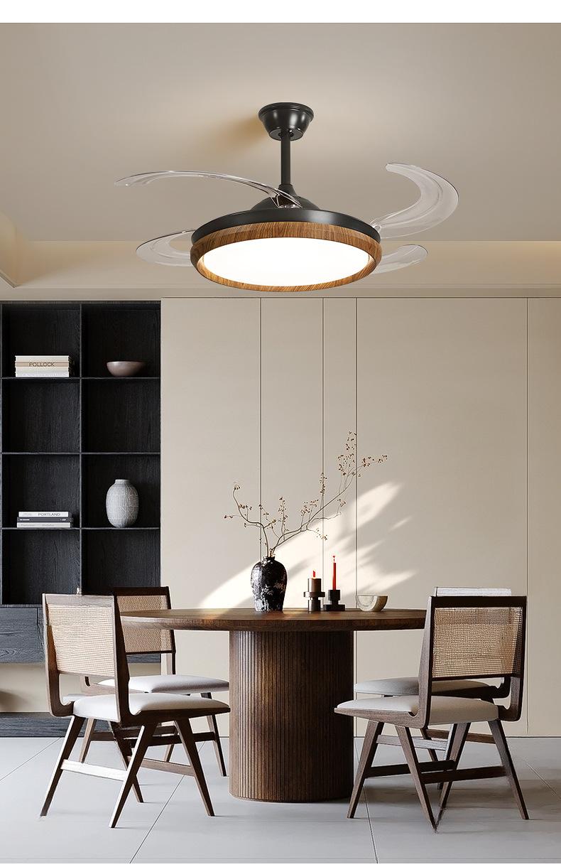 Luz de Ventilador de Espectro Completo Luz de Ventilador de Techo Invisible Color Nogal Estilo Wabi-Sabi Silenciosa Protección Ocular Luz de Ventilador para Restaurante Dormitorio