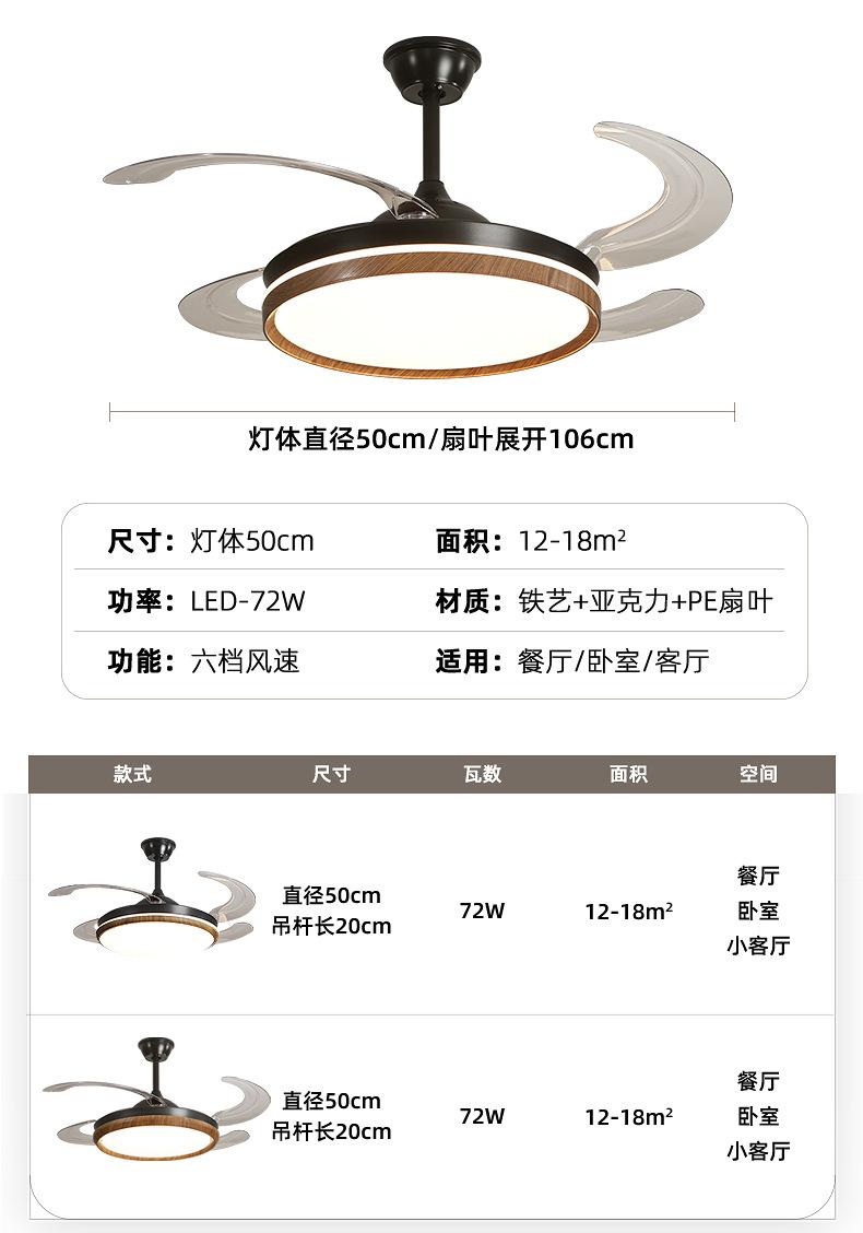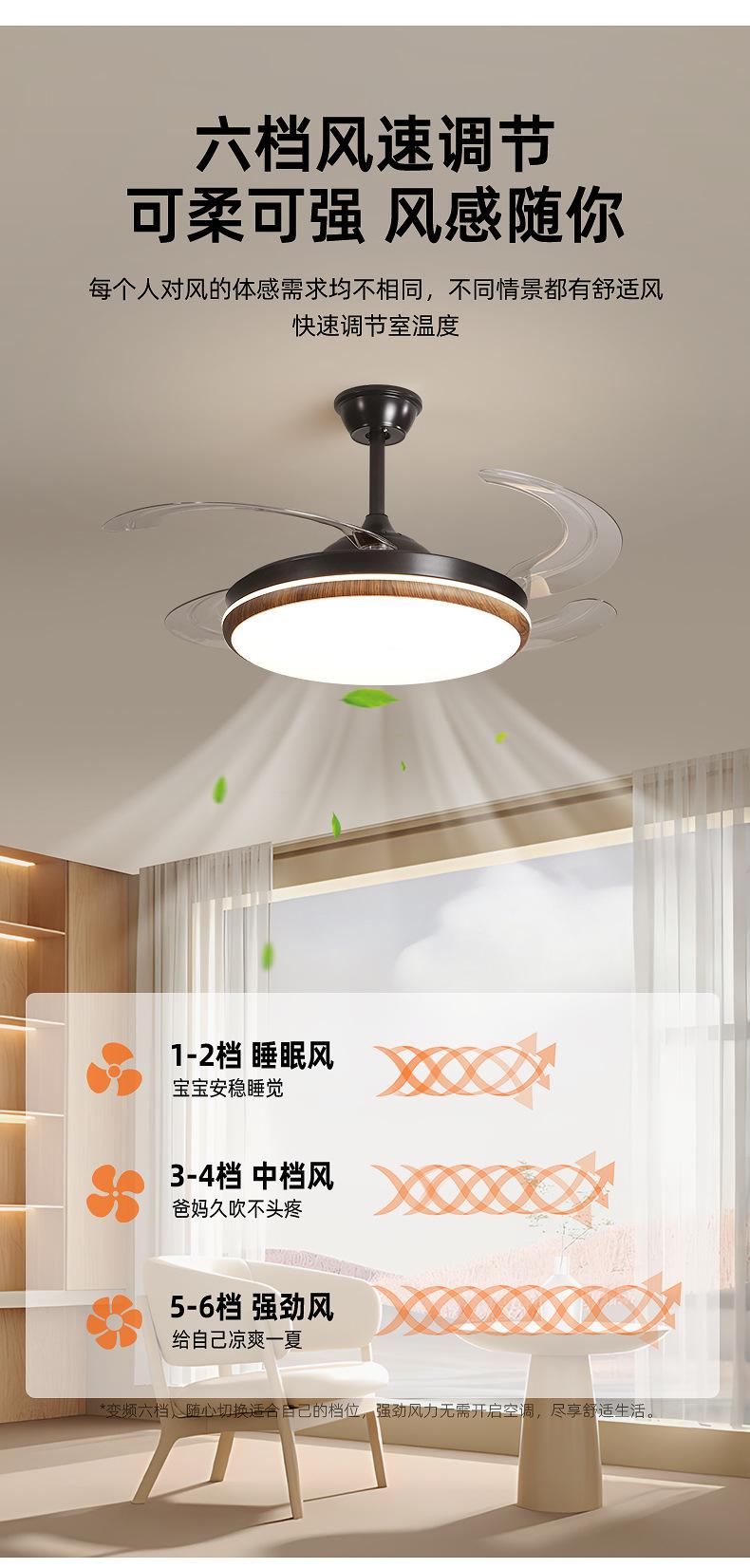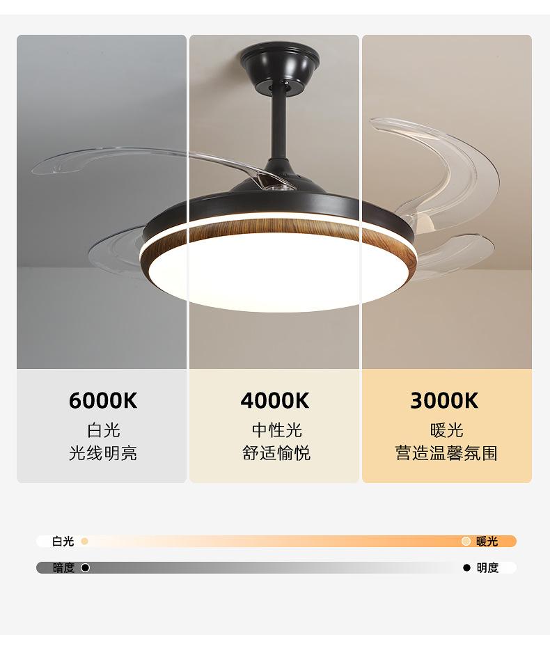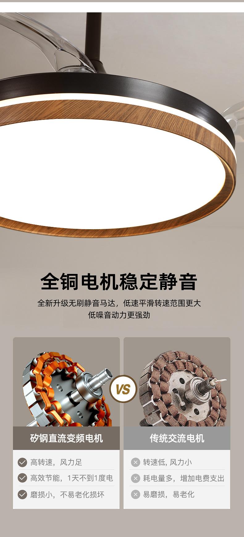 Luz de Ventilador de Espectro Completo Luz de Ventilador de Techo Invisible Color Nogal Estilo Wabi-Sabi Silenciosa Protección Ocular Luz de Ventilador para Restaurante Dormitorio